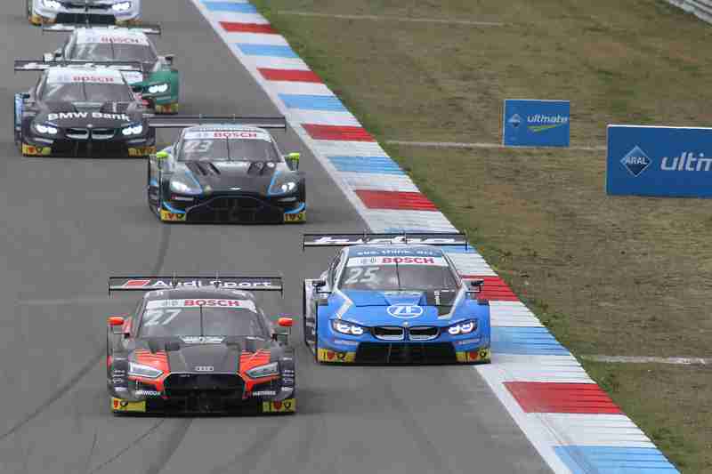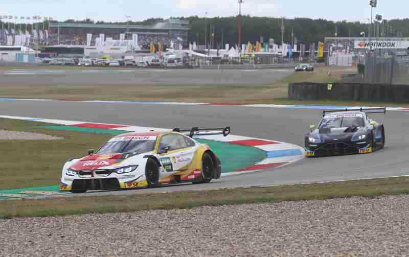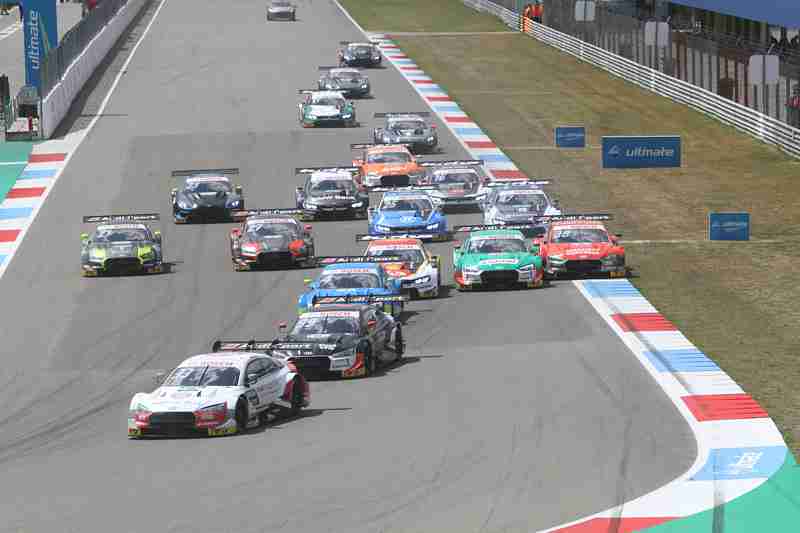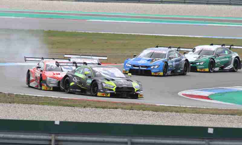 Ihren zehnten Lauf in dieser Saison nahmen die Piloten am Sonntagmittag bei strahlendem Sonnenschein unter die Räder. Marco Wittmann musste das Rennen aus der Boxengasse aus aufnehmen. Nach der Einführungsrunde funktioniert dieser ohne Probleme und der Pole-Setter konnte seine Position verteidigen und führte die Meute in die erste Kurve. Dort nahmen bereits einige den weiten Weg nach außen. Einer der Aston Martin Piloten war bereits im Kiesbett gelandet. Es war Paul di Resta. Nach der ersten Runde führte weiterhin Rene Rast vor Mike Rockenfeller und Robin Frijns. Jonathan Aberdein hatte einen schlechten Start und war auf Platz acht zurückgefallen. Marco Wittmann hatte bereits Boden gut gemacht und nahm Platz zwölf ein.