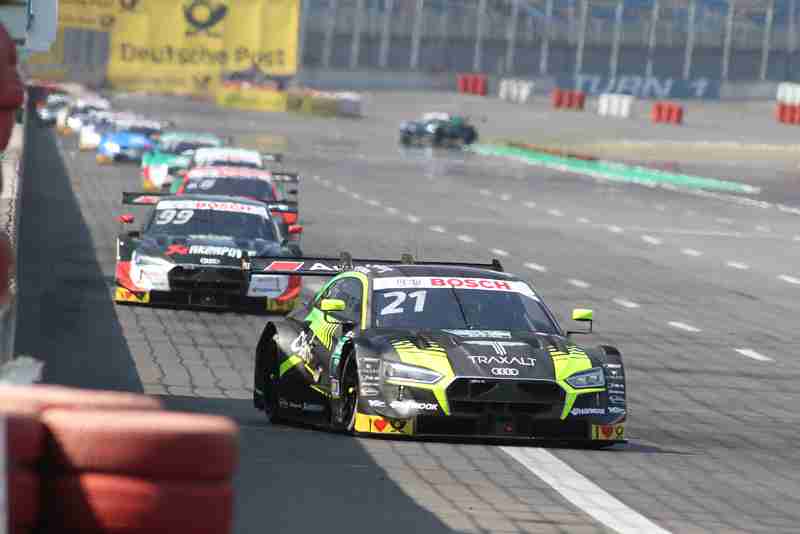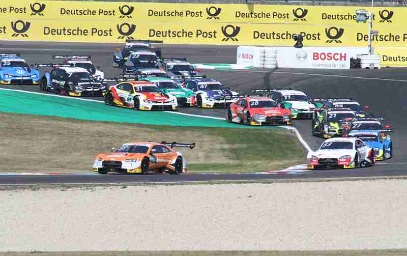 Auch beim zweiten Lauf an diesem Wochenende meinte es der Wettergott sehr gut mit allen. Als man sich in die Startaustellung begab hatte es zuvor eine Disqualifizierung von Philipp Eng gegeben, wegen unerlaubten Arbeitens unter Parc-Ferme-Bedingungen. Er dufte trotzdem am Rennen teilnehmen, muss aber vom Ende der Startaufstellung starten. Beim Ausschalten der Startampel zum 500. DTM-Rennen hatte Jamie Green einen guten Start. Von Platz vier auf Rang zwei nach vorne geprescht war Rene Rast. Nico Müller hatte den Start komplett versemmelt, er war nur noch auf Rang zehn unterwegs. Auch Marco Wittmann hatte Federn lassen müssen.