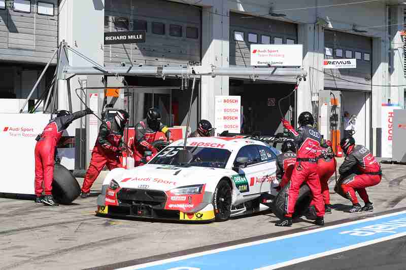 Unterdessen war Jamie Green am Tabellenführer dran. Dieser musste jetzt absolute Kampflinie fahren. Timo Glock und Pietro Fittipaldi kamen gleichzeitig zum Stopp herein. Timo Glock konnte die Boxengasse zuerst verlassen, bei Pietro Fittipaldi dauerte der Stopp länger als geplant. Um den Druck von Jamie Green zu entgehen vollzog Rene Rast nach zwölf Runden seinen Stopp. Beim nächsten Umlauf wurde der Pole-Setter in die Box zitiert. Mike Rockenfeller führte jetzt das Feld an. Jamie Green kam vor Rene Rast wieder auf die Strecke zurück. Jetzt musste der Brite absolute Kampflinie fahren. Bei noch 28 Minuten zu fahrender Zeit mussten noch sieben Fahrer ihren Pflichtboxenstopp hinter sich bringen. Marco Wittmann wechselte nach 19 Runden seine Reifen. Nico Müller lag unterdessen auf Platz elf.