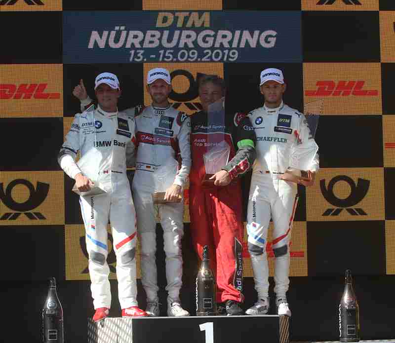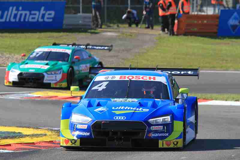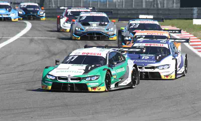 Im nach hinein musste der Tabellenführer dann den Niederländer ziehen lassen. Genauso hatte auch Mike Rockenfeller Federn lassen müssen, denn der Südafrikaner hatte ihn niedergerungen. Loic Duval musste in den letzten fünf Minuten alles geben, denn Nico Müller saß ihm arg im Nacken. Nico Müller hatte in der vorletzten Runde seinen fünften Platz verloren, denn er wurde von Jonathan Aberdein niedergerungen. Damit holte Rene Rast sich vorzeitig die Meisterschaft. An der Spitze ging es in der NGK-Schikane zur Sache. Der Niederländer hatte dort die Abkürzung genommen und war jetzt der Führende. Er musste aber Jamie Green wieder vorbei lassen. Nach 41 Runden gewann Jamie Green vor Robin Frijns und Rene Rast. Letzterer holte sich damit zum zweiten Mal den Titel DTM-Meister. Nico Müller sah auf Patz sechs das Ziel. Philipp Eng auf Platz acht war der beste BMW-Fahrer und Jake Dennis auf Rang vierzehn der schnellste Aston Martin-Pilot.
