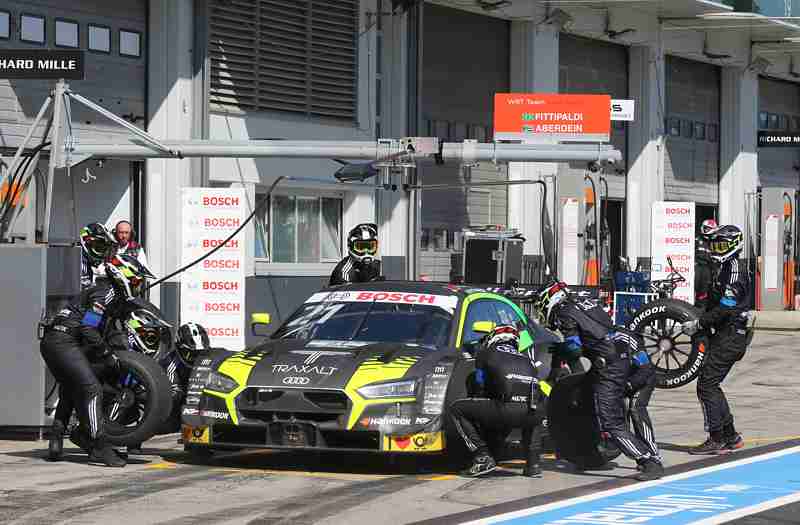 Das zweite Zeittraining nahmen die Piloten erneut bei strahlendem Sonnenschein am Sonntagmorgen unter die Räder. Bei Halbzeit der Session hatte Rene Rast sich mit einer Zeit von 1:20,081 Minuten an die Spitze gefahren. Hinter ihm lagen Jonathan Aberdein und Loic Duval. Nico Müller und Marco Wittmann hatten sich auf den Rängen neun und zwölf platziert. Ferdinand von Habsburg auf Platz dreizehn war der beste Aston Martin-Pilot. Wenig später kamen sie dann wie immer alle in die Box gefahren und warteten ab.