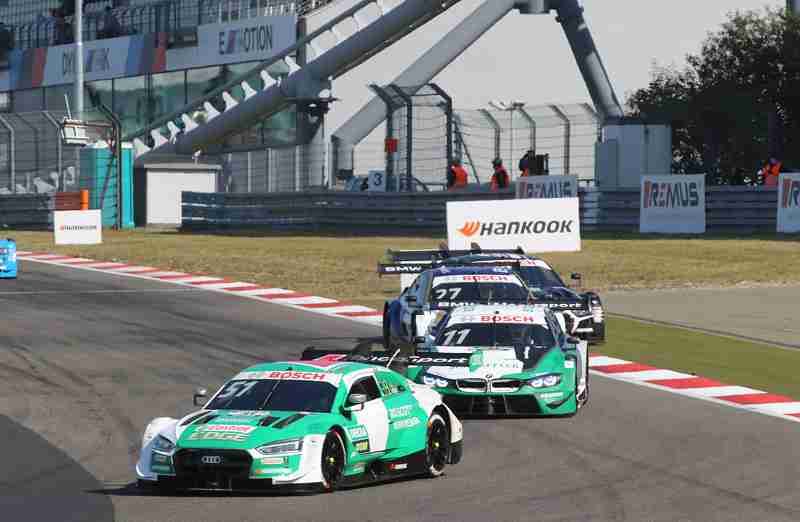 Nach der Einführungsrunde am Samstagmittag funktionierte der Start zum elften Lauf in dieser Saison ohne Probleme. Rene Rast hatte keinen so guten Start, denn Robin Frijns führte die Meute in die erste Kurve hinein und konnte sich direkt mit einigen Wagenlängen absetzen. Unterdessen hatte der amtierende Meister alle Hände voll zu tun sich Philipp Eng vom Hals zu halten. Zwischenzeitlich war Jamie Green auf Abwegen unterwegs. Noch in der ersten Runde gerieten Loic Duval und Timo Glock aneinander. Im Verlauf der zweiten Runde war Ferdinand Habsburg im Kiesbett gelandet. Nach der ersten Runde war der Niederländer schon mit 1,7 Sekunden auf und davon gefahren. Auf Platz zwei und drei lagen Rene Rast und Philipp Eng. Nico Müller war auf Platz vier unterwegs.