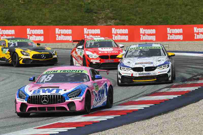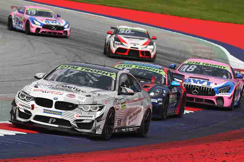 Der Niederländer Colin Caresani ist zurück auf der Siegerstraße in der DTM Trophy. Im BMW M4 setzte sich Colin Caresani im Samstagsrennen auf dem Red Bull Ring in Österreich nach 20 actiongeladenen Runden gegen die Konkurrenz durch. Zweiter wurde der Brasilianer Thiago Vivacqua im Audi vor Jacob Riegel im Aston Martin des Teams Speed-Monkeys. Das Duell zwischen Collin Caresani und Thiago Vivacqua um den Sieg bestimmte das Geschehen im elften Saisonrennen der Talentschmiede auf der hochkarätigen DTM-Plattform. Vor allem in den ersten Rennrunden lieferten sich der BMW-Pilot und der Audi-Fahrer begeisternde Rad-an-Rad-Duelle.