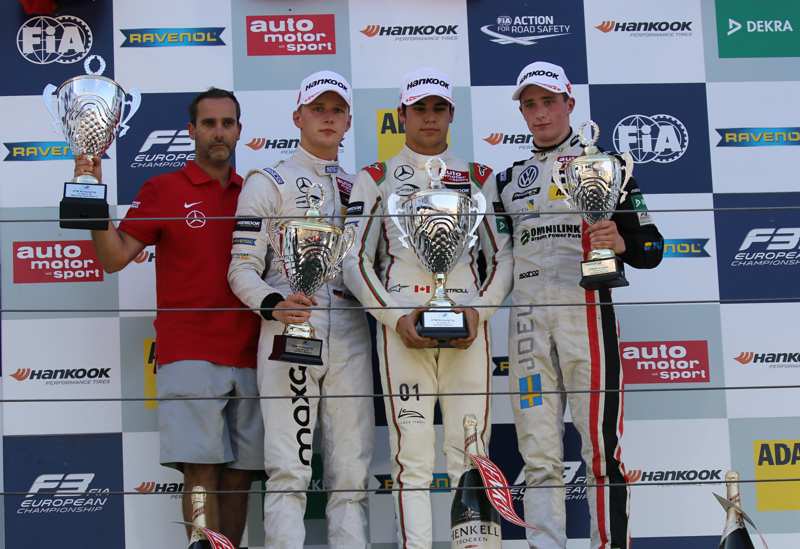Lance Stroll fuhr im ersten Qualifying der FIA Formel-3-Europameisterschaft auf dem Nürburgring zwar nur die zweitschnellste Runde, doch er wird das 22. Saisonrennen trotzdem von der Pole-Position beginnen. Grund ist eine Strafe, die Sérgio Sette Câmara, der Beste des Qualifyings, aufgrund eines Motorwechsels in Spa-Francorchamps erhält und die ihn in der Startaufstellung um zehn Positionen nach hinten versetzt. Nick Cassidy (Prema Powerteam), Maximilian Günther und George Russell starten von den Rängen zwei bis vier in den ersten Lauf auf dem 3,629 Kilometer langen Sprintkurs des Nürburgrings, gefolgt vom besten Rookie Joel Eriksson (Motopark).