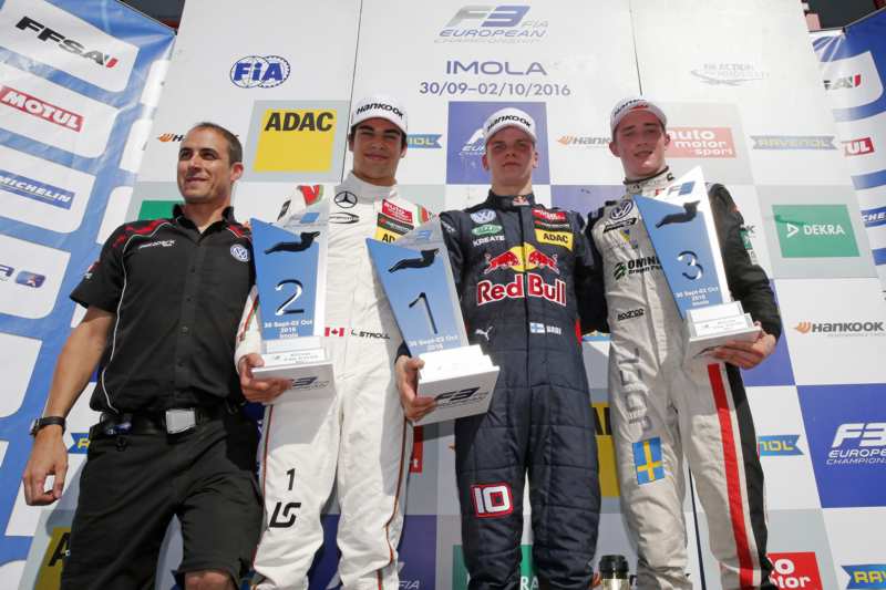 Mit seinem zehnten Saisonsieg krönte sich der Kandier Lance Stroll auf dem 4,909 Kilometer langen Autodromo Enzo e Dino Ferrari vorzeitig zum neuen Champion der FIA Formel-3-Europameisterschaft und folgt damit dem Schweden Felix Rosenqvist. Der 17-jährige Junior des Williams Formel-1-Teams feierte im italienischen Imola einen nie gefährdeten Start/Ziel-Sieg und konnte auch von drei Safety-Car-Phasen nicht gestoppt werden. Hinter dem neuen FIA Formel-3-Europameister erreichten der beste Rookie Joel Eriksson (Motopark) aus Schweden und der Brite George Russell (HitechGP) die Ziellinie.