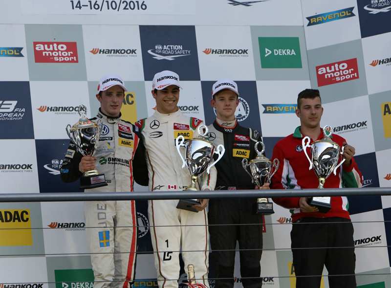 Lance Stroll (Prema Powerteam): „Diese Wochenende war richtig gut. Vom vierten Startplatz hätte ich nicht unbedingt mit einem Sieg gerechnet, aber schon mein Start war sehr gut. Gegen Joel habe ich dann eine Chance gesehen und ihn überholt. Mein Auto war klasse und ich konnte bis zum Schluss einen guten Rhythmus gehen. Das Finalwochenende hat viel Spaß gemacht und ich hätte mir kaum mehr als einen Dreifachsieg wünschen können. Insgesamt waren meine zwei Jahre in der FIA Formel-3-EM sehr schön, ich habe sie sehr genossen. Sie sind wie im Fluge vergangen. Die FIA Formel-3-EM ist eine tolle Meisterschaft mit sehr guten Fahrern und Teams.“