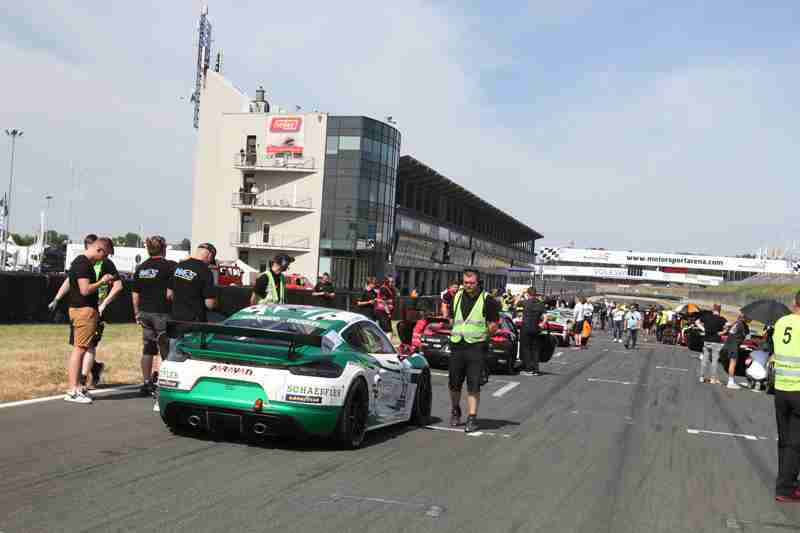 Bei dieser Reihenfolge sollte es aber noch lange nicht bleiben. Immer wieder kam es zu Positionsverschiebungen. Als noch drei Minuten auf der Uhr standen, wurde das Qualifying mit der roten Flagge unterbrochen, weil Mario Hirsch von der Strecke abgekommenund eingeschlagen war. Er musste erst einmal geborgen werden. Zu dieser Zeit führte Tim Heinemann mit einer Zeit von 1:23,882 Minuten vor Salman Owega und Carrie Schreiner. Im nach hinein wurde das Zeittraining nicht mehr aufgenommen. Die Pole-Position holten sich dann Tim Heinemann/Patrick Assenheimer mit einer Zeit von 1:23,882 Minuten. Startplatz zwei und drei nehmen Salman Owega und Carrie Schreiner/Markus Winkelhock ein. Die schnellsten GT4-Piloiten Denis Bulatov/Leon Koslowski werden aus der vierten Startreihe das Rennen aufnehmen, gefolgt von Luca Arnold/Marvin Dienst und Leo Pichler/Rick Bouthoorn.