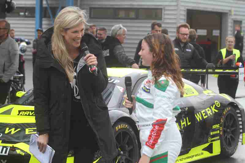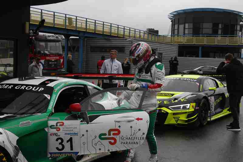 Ernst wurde es dann für alle am Samstagmorgen um 9.00 Uhr, denn nun mussten sie ihre Startaufstellung für den Lauf am Sonntagvormittag ausfahren. Da die Strecke durch den Regen immer noch feucht war, konnten gegenüber gestern keine schnelleren Zeiten erreicht werden. Die Pole-Positionen hatten sich dann Tim Heinemann/Maximilian Götz nach neun gefahrenen Runden mit einer Zeit von 1:45,338 Minuten geholt. Hinter ihnen werden Salman Owega und Heiko Neumann/Marvin Kirchhöfer ins Rennen gehen. Der schnellste GT4-Pilot Kevin Rohrscheidt nimmt das Rennen aus der vierten Startreihe aus auf. Carrie Schreiner, die einzige Dame im Feld startet von Rang vier.