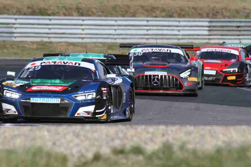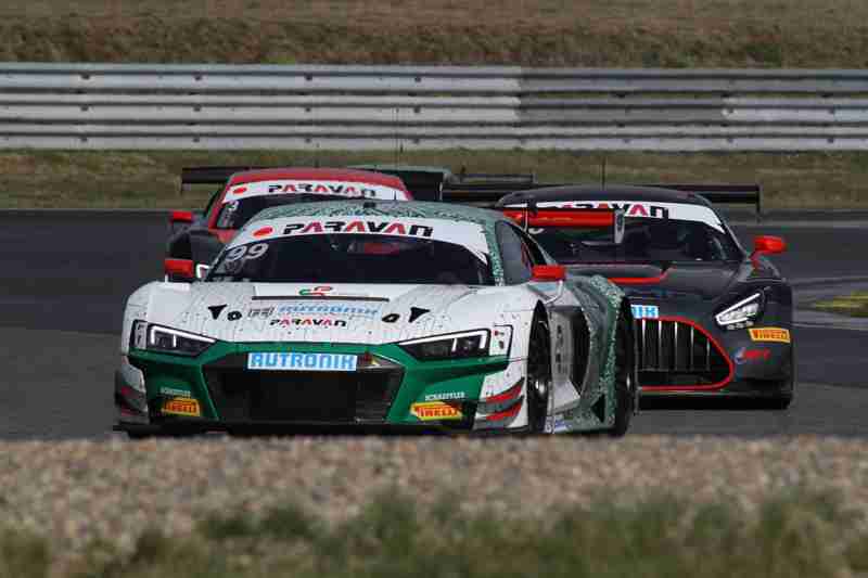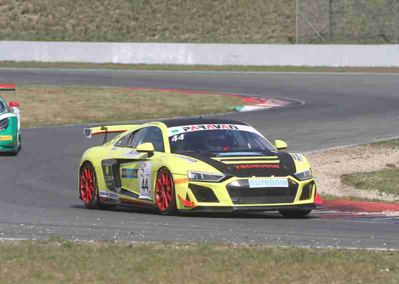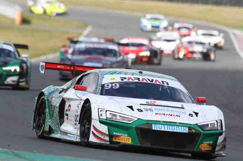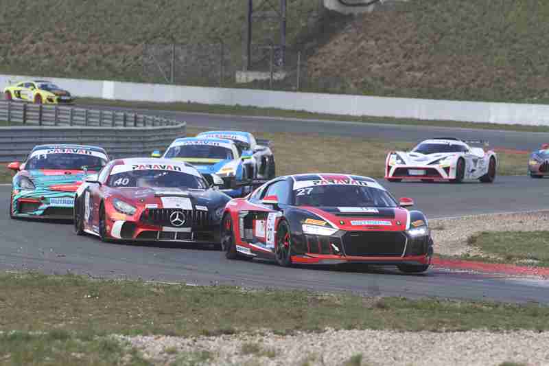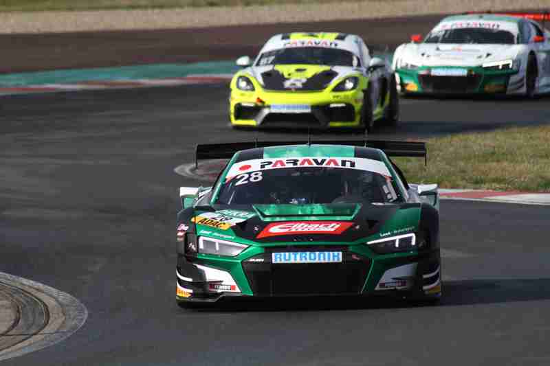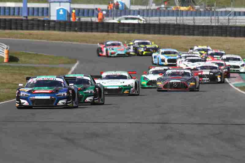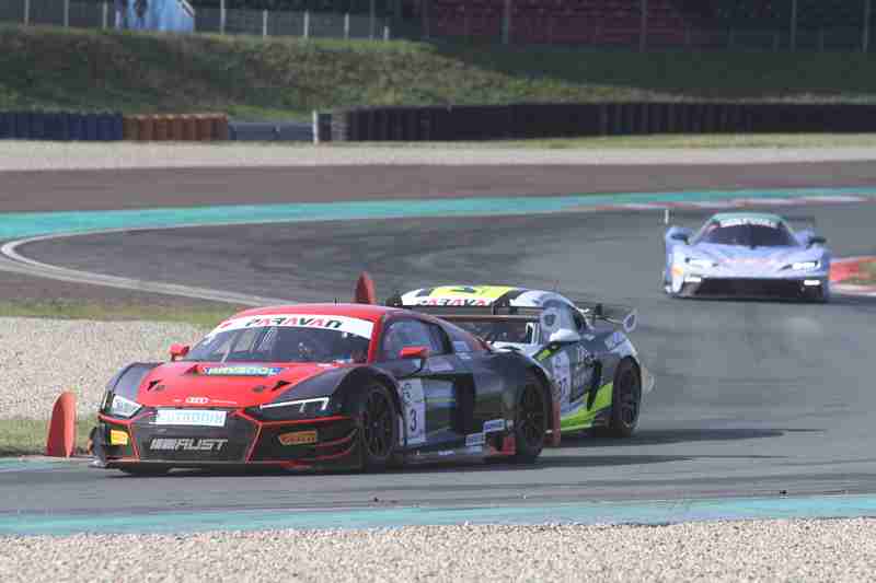 Wie schon beim ersten Lauf am Vormittag wurden auch diesmal zwei Einführungsrunden gefahren, bevor die Startampel auf „grün“ schaltete. Somit standen wieder nur 27 Minuten Rennzeit auf der Uhr. Auch dieser Start konnte der Pole-Setter für sich verbuchen. Salman Owega und Markus Winkelhock gerieten etwas aneinander. Beim Start hatten sich direkt vier Audi`s auf den ersten vier Plätzen platziert. Salman Owega hatte im nach hinein Markus Winkelhock nicht halten können und musste ihn ziehen lassen. Marvin Dienst lag als bester Mercedes-Pilot hinter den vier Audi`s. Als schnellster GT4-Pilot war Leon Koslowski auf Rang acht unterwegs. Dieser hatte Max Kronberg und Robert Haub im Schlepptau. In der dritten Runde war Etienne Ploenes mit einem Kühlerschaden in die Box gekommen und musste dort das Rennen früher beenden als geplant.
