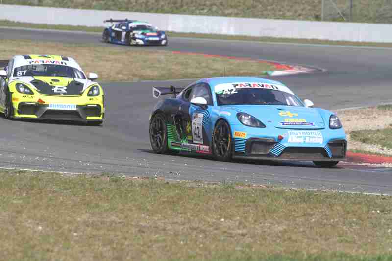 Unterdessen war Lucas Mauron nun der beste GT4-Pilot auf Rang sieben. Bei noch elf Minuten zu fahrender Zeit war Julian Hanses an Lucas Mauron vorbeigegangen. Zur gleichen Zeit war Etienne Ploenes an Tobias Erdmann vorbeigegangen. Er lag nun auf Platz elf. Jusuf Owega war jetzt schon bei seinen Überrundungen. Alle machten aber ordentlich Platz. Lucas Mauron und Gabriela Jilkova waren sich nicht ganz einig, mit der Folge, das Lucas Mauron sich drehte und auf Rang zwölf zurück fiel. Diese Aktion stand unter Beobachtung der Rennleitung. Nach dreizehn Runden war Rick Bouthoorn an Lucas Mauron vorbeigegangen und hatte sich somit auf Platz zwölf gefahren. Wenig später trat Gabriela Jilkova ihre Durchfahrtsstrafe wegen der Aktion mit Lucas Mauron an.