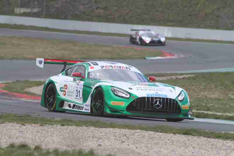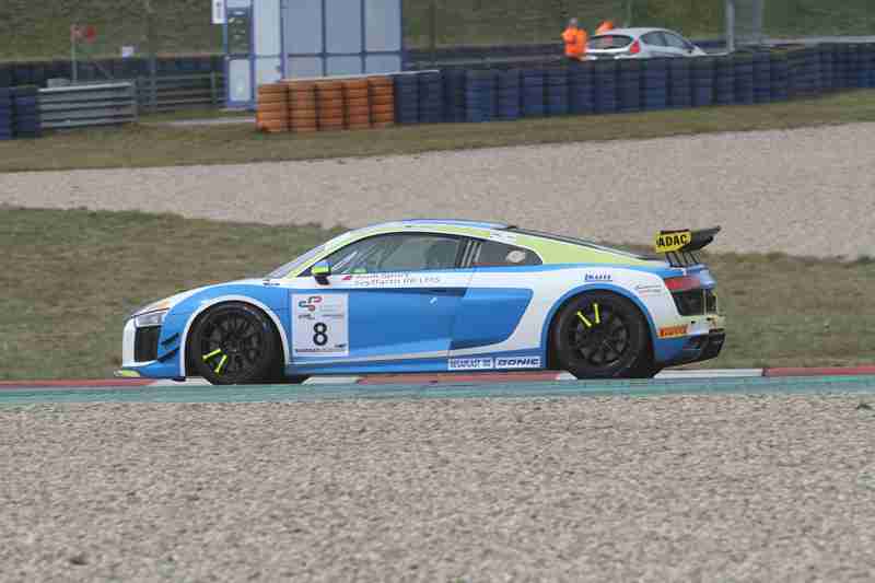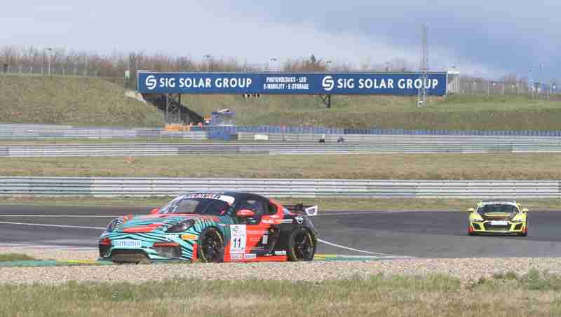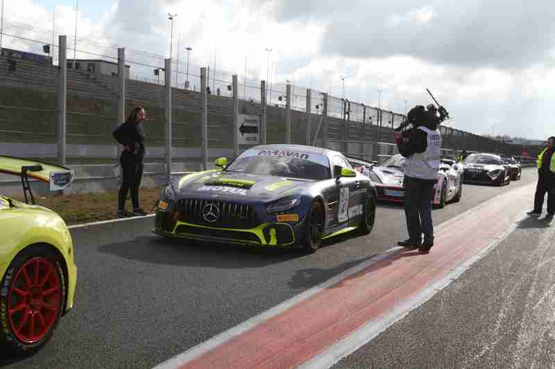 Von 09.15 Uhr bis 09.35 Uhr stand am Samstagmorgen das erste Qualifying der GTC auf dem Zeitplan. Hier wurde nun die Startaufstellung für das Rennen am Sonntagmorgen ausgefahren. Diesmal schien die Sonne, aber es wehte ein eisiger Wind und die Temperaturen waren alles andere als angenehm. Zunächst wechselten die Positionen. Nach einiger Zeit musste diese Session mit der roten Flagge unterbrochen werden, da der Pilot Ivan Stanchin (CV Performance Group) seinen Mercedes-AMG GT4 nicht mehr auf der Strecke halten konnte und heftigst in die Leitplanken eingeschlagen war. Die übrigen Protagonisten wurden jetzt zurück zur Box geordert, da erst einmal die Leitplanke repariert werden musste. Dies dauerte fast gut eine Stunde. Danach ging das Zeittraining weiter.