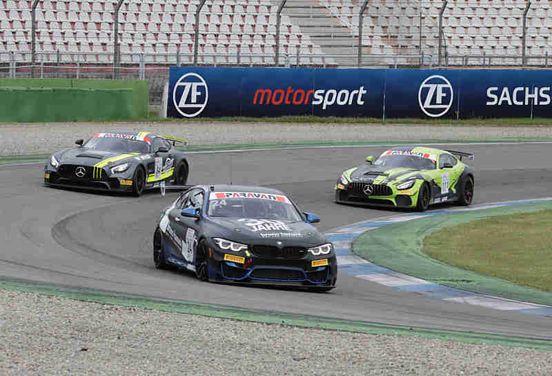 Jetzt nahm sich Markus Winkelhock Kenneth Heyer vor und konnte auch diesen niederringen. Damit war er auf Platz vier vorgefahren. Uwe Schmidt hatte zwischenzeitlich kurzen Prozess gemacht und war gleich an zwei Kontrahenten vorbeigegangen und nahm Rang 17. ein. Hinter ihm bekämpften sich jetzt Fabio Rauer und Marc Bartels. In der vorletzten Runde wurde Kenneth Heyer von Luca Arnold umgedreht. Diese Aktion lag dann auch unter Beobachtung. Danach konnte sich Kenneth Heyer auf Rang sechs wieder einreihen. Julian Hanses holte sich nach 17 Runden den Sieg vor Moritz Wiskirchen und Friedel Bleifuss. MarkusWinkelhock und Kenneth Heyer beendeten das Rennen auf den Rängen vier und sechs. Schnellster GT4 Fahrer war Herolind Nuredini auf Platz neun.