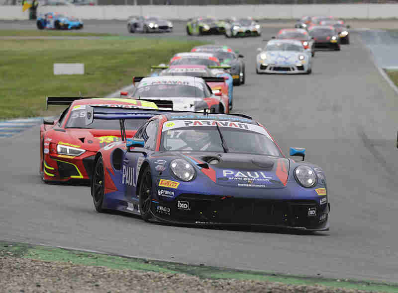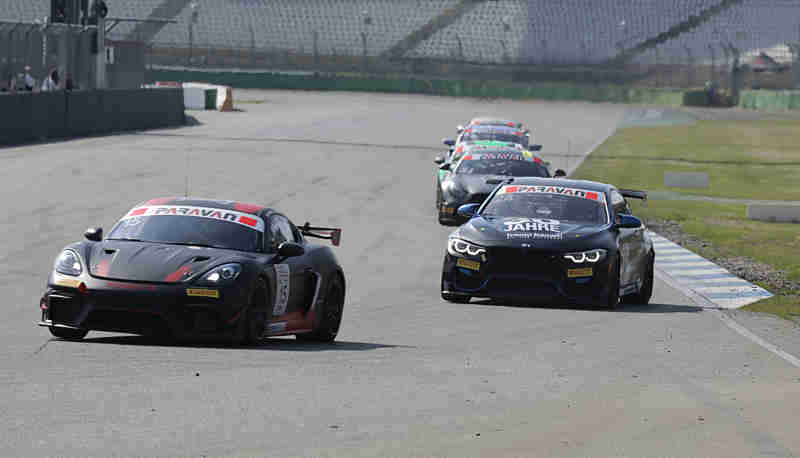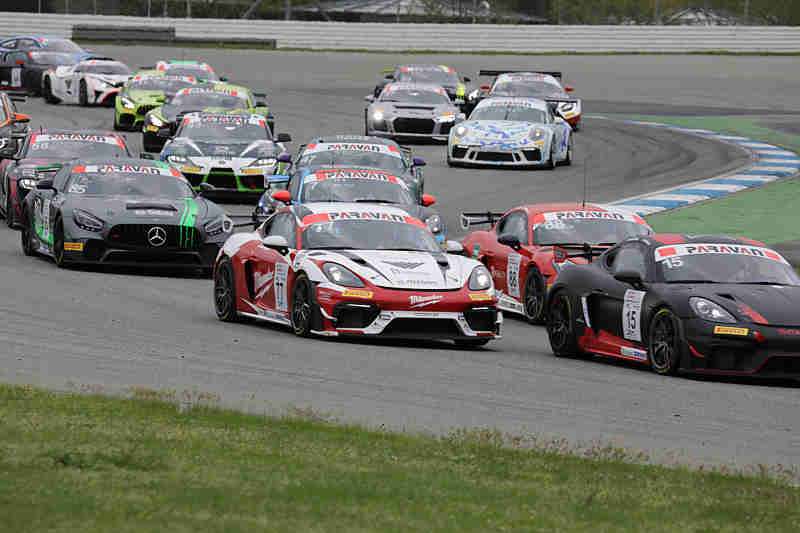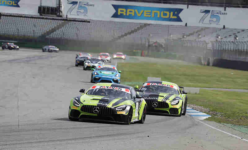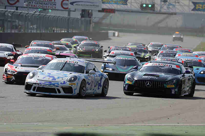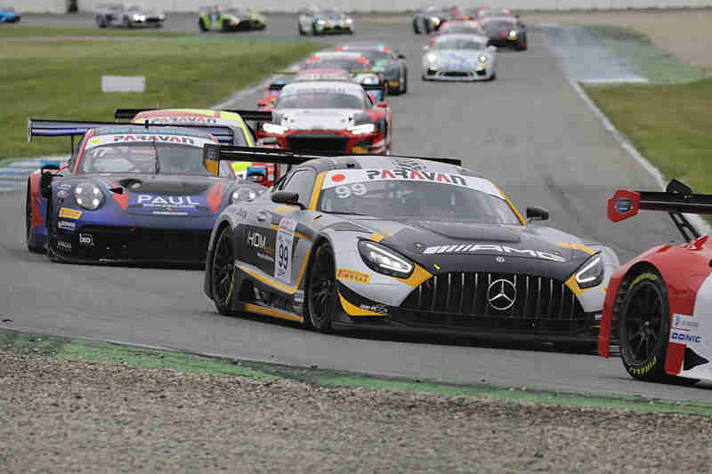 An der Spitze hatten sich nach zwei Runden die Führenden bereits mit über zwei Sekunden abgesetzt. Tobias Erdmann/Bernd Schaible wurden von Joel Mesch/Tim Neuser etwas ins Aus geschickt. Zu dieser Zeit hatten sich Roland Arnold/Luca Arnold tief ins Kiesbett eingegraben. Um die Mercedes-Fahrer in aller Ruhe bergen zu können, kam nun das Safety Car raus. Damit waren alle herausgefahrenen Vorsprünge erst einmal futsch. Der Re-Start erfolgte dann nach sieben Runden und ging zu Gunsten der Pole-Setter aus. Wie an der Perlenschnur aufgezogen ging es zunächst hintereinander her. In der Spitzkehre gab es kleinere Berührungen. Ansonsten ging alles mit Disziplin hier hindurch.