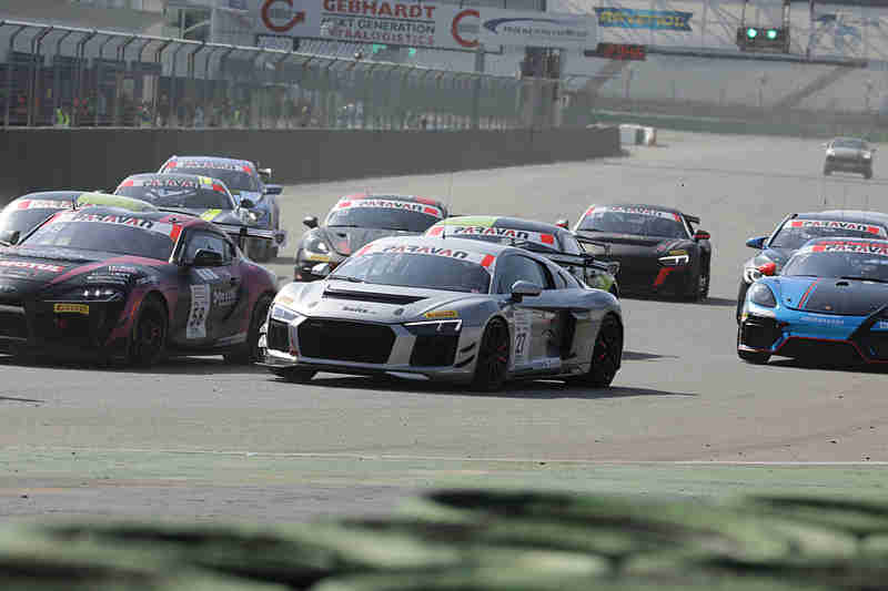 Nach fünf Stunden erfolgte dann das zweite GTC Rennen am Sonntagnachmittag. Wiederum klappte die Startphase ohne weiteres. Julian Hanses konnte den fliegenden Start für sich verbuchen. Friedel Bleifuss hatte direkt einen Rang gut gemacht. Fabian Kohnert war von Rang sieben gestartet und nach einigen Metern in die Boxenmauer eingeschlagen. Die Rennleitung schickte nun das Safety Car hinaus. Nach dieser Runde führte weiterhin Julian Hanses vor Friedel Bleifuss und Moritz Wiskirchen. Kenneth Heyer lag auf Rang vier. Leo Pichler war als schnellster GT4 Fahrer auf Platz acht unterwegs. Nach vier Runden erfolgte der Re-Start und dieser konnte Julian Hanses für sich verbuchen. Friedel Bleifuss war wenig später in der zweiten Kurve etwas zu weit raus gekommen. Dies konnte Moritz Wiskirchen dann nutzen und sich auf Platz zwei schieben.