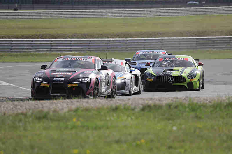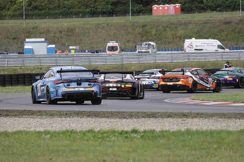 Im nach hinein erhielt Enrico Förderer noch eine Durchfahrtsstrafe wegen der Aktion mit dem Schlagschrauber. Der Re-Start erfolgte dann nach 10 Runden und ging zu Gunsten des Führenden aus. Fabian Kohnert auf Rang acht fahrend war etwas auf Abwegen unterwegs. Er konnte seine Fahrt aber weiter fortsetzen. Zwischenzeitlich hatten sich Timo Recker und Marcel Marchewicz auf die Plätze drei und vier gefahren. Es hatte auch nicht lange gedauert und Finn Zulauf hatte sich mit einen Vorsprung von 7,382 Sekunden an die Spitze gesetzt. Der Pole-Setter war unterdessen auf Platz fünf unterwegs. Sollte Tom Spitzenberger seinen zweiten Platz behaupten können, wäre er der erste GT4-Pilot der bei der GT3-Siegerehrung mit auf dem Podest stehen würde.