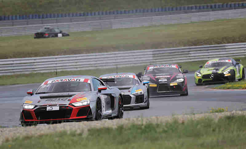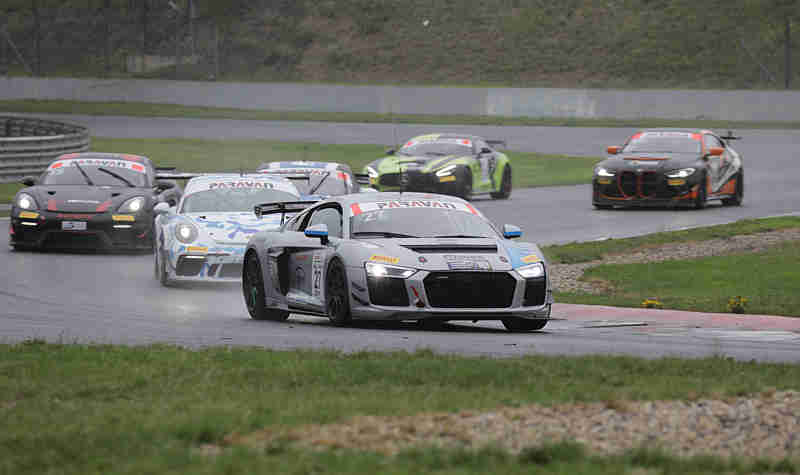 Felix von der Laden war unterdessen in die Box abgebogen, er hatte eine Durchfahrtsstrafe wegen der Aktion mit Tim Horrell bekommen. Philip Wiskirchen und der Führende Julian Hanses erhielten ebenfalls eine Durchfahrtsstrafe wegen einer Runde zu viel gefahren in der Rotphase. Im Verlauf der zehnten Runde war Joel Mesch von der Strecke abgeflogen und hatte sich tief im Kiesbett eingegraben. Sofort wurde das Safety Car hinaus geschickt um den Havaristen in aller Ruhe bergen zu können. Ivan Peklin war immer noch der schnellste GT4-Pilot auf Rang sieben. Egor Litvinenko war zwischenzeitlich in die Box gekommen. Er konnte aber nach einiger Zeit wieder auf die Reise geschickt werden. Er eilte nun dem Feld hinterher. Im nach hinein konnte das Rennen dann für vier Minuten wieder frei gegeben werden.