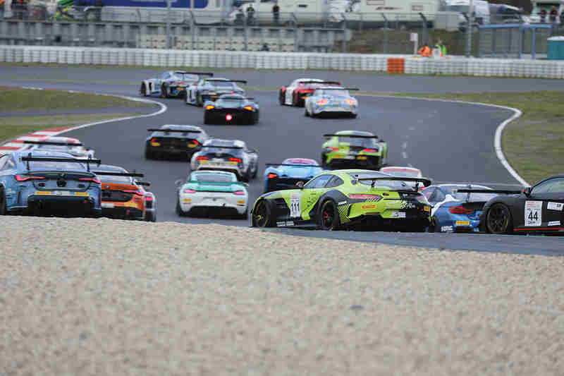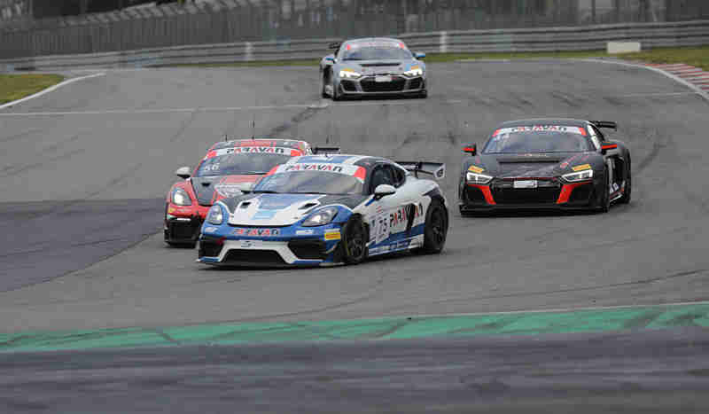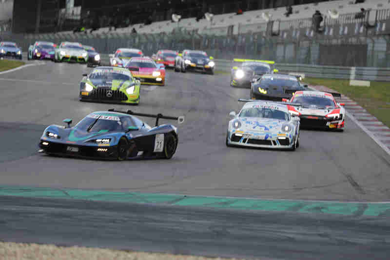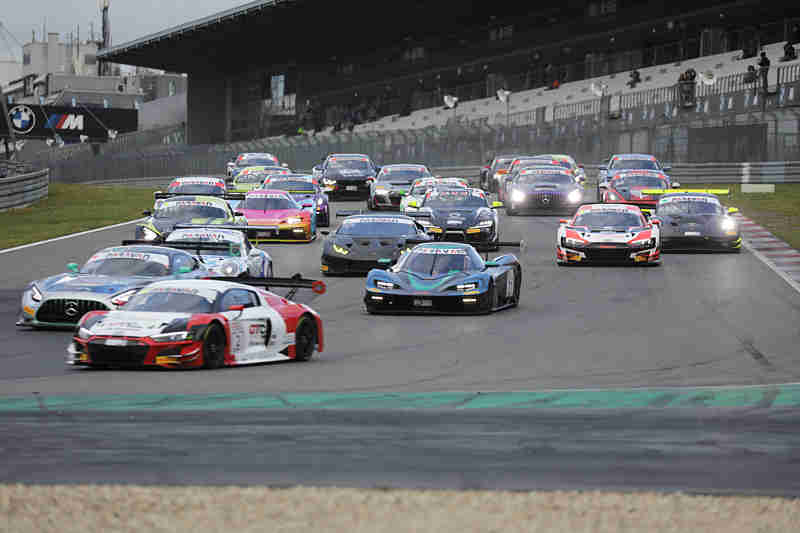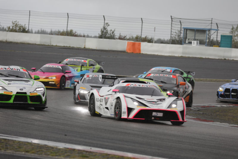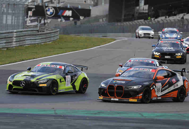Als letzte Serie nahm das GT60 powered by Pirelli den fünften Meisterschaftlauf am Samstagnachmittag bei kühlen Temperaturen unter die Räder. Den fliegende Start konnten Luca Arnold/Christer Jöns für sich verbuchen. Weit gefächert ging es auf die erste Kurve zu. Dort sortierte man sich wieder ein. Überall wurde bereits hart um jede Position gekämpft. Auf Platz zwei und drei waren Moritz Wiskirchen/Marcel Marchewicz und Finn Zulauf/Julian Hanses unterwegs. Yves Volte/Felix von der Laden lagen als beste GT4-Piloten auf Rang acht. Moritz Wiskirchen/Marcel Marchewicz mussten absolute Kampflinie fahren, denn der Druck von Finn Zulauf/Julian Hanses wurde immer größer. Von diesem Zweikampf profitierte Luca Arnold/Christer Jöns an der Spitze. Sie hatten einen Vorsprung von 1,623 Sekunden herausgefahren.