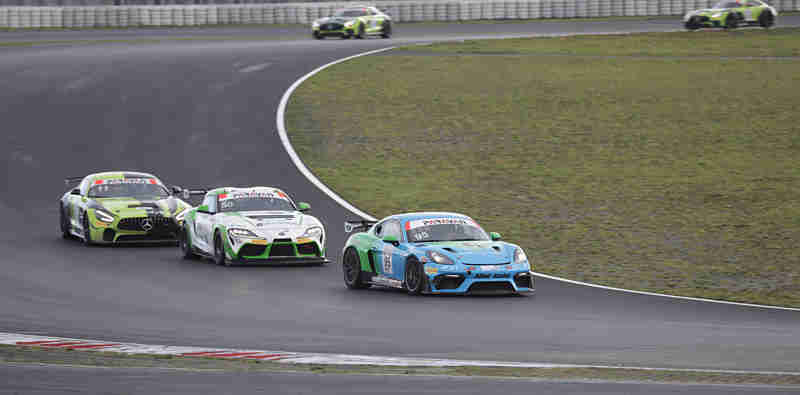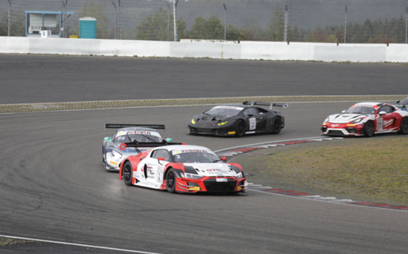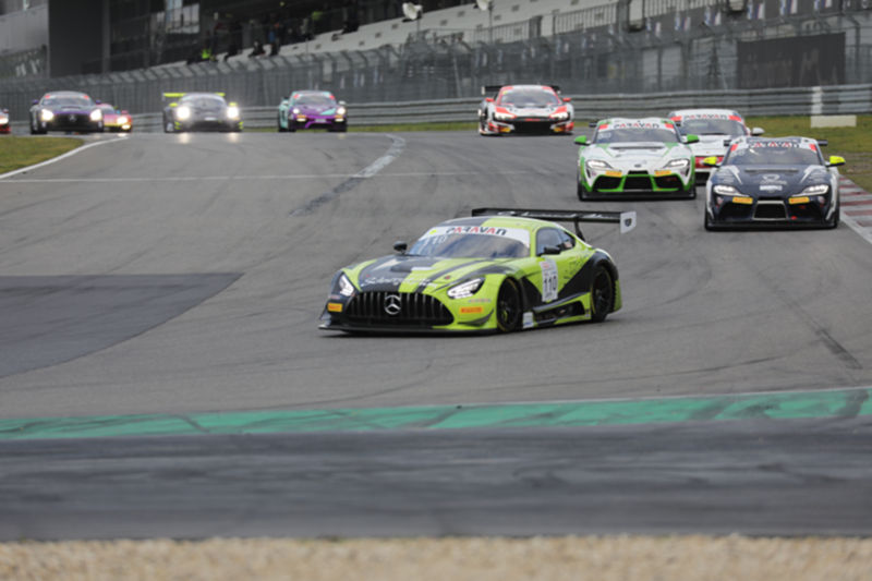 Markus Winkelhock/Florian Blatter hatten sich an vierter Position von der Strecke gedreht. Sie kamen danach in die Box und holten sich für die letzten elf Minuten noch Regenreifen. Von einem Dreher waren auch Jay Mo Härtling/Enrico Förderer nicht verschont geblieben. Wie auf rohen Eiern fuhren die Piloten die auf Slicks unterwegs waren. Nachdem Kenneth Heyer/Roland Arnold auf Regenreifen gewechselt hatten, ging es ruck zuck bis auf Platz fünf nach vorne. Marcel Marchewicz/Moritz Wiskirchen hatten inzwischen die Führung übernommen vor Julian Hanses/Finn Zulauf und Christer Jöns/Luca Arnold. Marvin Dienst/Alon Gabbay hatten nun die Führung bei den GT4-Fahrzeugen übernommen und sich auf Platz acht gefahren.