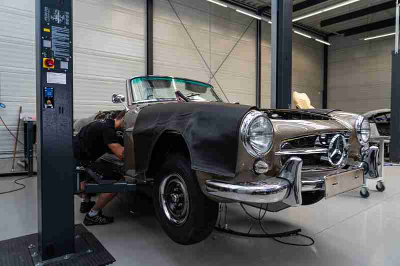 Ein Rundgang durch die Hallen bei SPS automotive performance offenbart, dass der weltweite Einsatz von GT3-Fahrzeugen nur ein Teil des Geschäftsmodells in Willsbach ist. Faszinierende Sportwagen und legendäre Rennfahrzeuge aus verschiedenen Epochen reihen sich aneinander und genießen hier ihre wohlverdiente Pflege – ein optisches Fest für jeden Automobil-Enthusiasten. „Neben den Renneinsätzen betreuen wir auch viele Kunden, die keine Rennen fahren, sondern ausschließlich bei Trackdays ihren Spaß haben möchten. Auch dafür bereiten wir die Fahrzeuge entsprechend vor und betreuen diese an der Rennstrecke. Gleichzeitig halten wir auch eigene Fahrzeuge für diese Zwecke vor, die wir entsprechend vermieten. Aber auch die Wartung und Reparatur von Straßensportwagen gehört zu unseren Aufgaben“, erklärt Sohn. Ein weiteres Kompetenzfeld sind Spezialumbauten, die bei SPS mit höchster Professionalität durchgeführt werden. So wird derzeit gerade ein Mercedes 190 SL auf Elektroantrieb umgerüstet. Den Kundenwünschen sind nahezu keine Grenzen gesetzt.