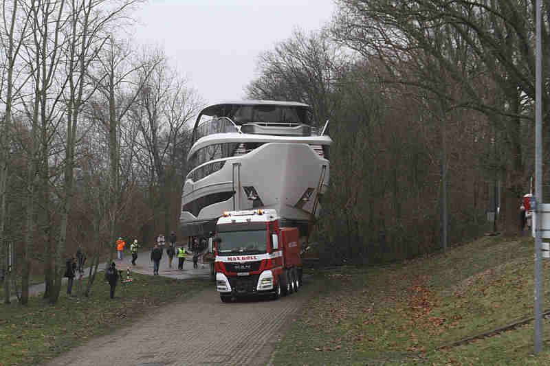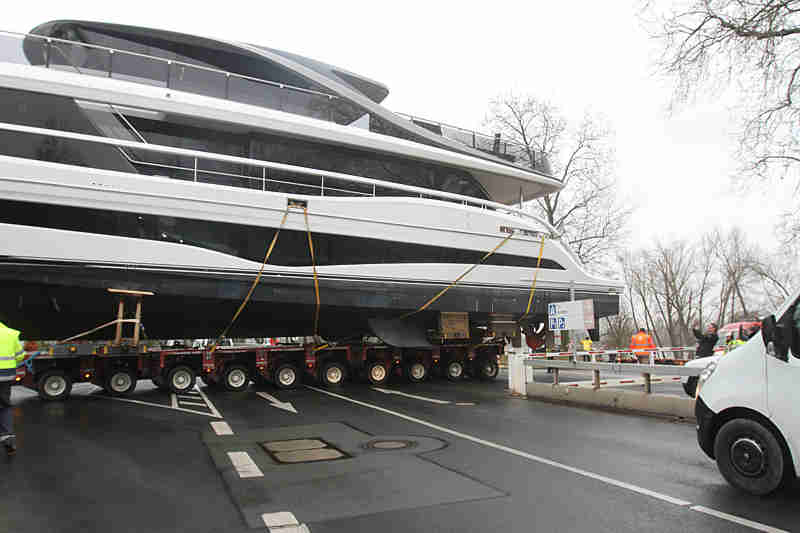 Aufgrund des anhaltend hohen Pegels des Rheins verschob sich die Ankunft des Pontons/Lastschiff mit den Yachten in Düsseldorf. Es fand nicht am 8. Januar wie geplant, sondern wurde erst am 13.1.2024 durchgeführt.