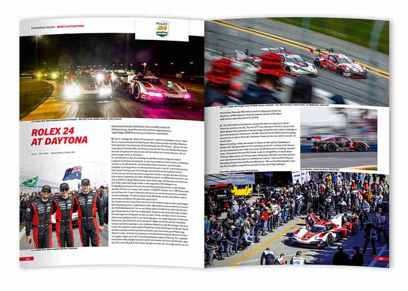 Fast 1.000 Fotos auf 400 Seiten erwarten den Leser im „Porsche Sport 2023“. Die 31. Ausgabe dieser Buchreihe beleuchtet die triumphalen Erfolge sämtlicher Porsche-Rennwagen auf allen Kontinenten – in Amerika, Asien, Australien und Europa – sowie den berühmten Langstreckenrennen in Dubai, Daytona, Spa-Francorchamps, Nürburgring-Nordschleife und den Widereinstieg auf die Jagd zum Gesamtsieges bei den 24 Stunden von Le Mans.
