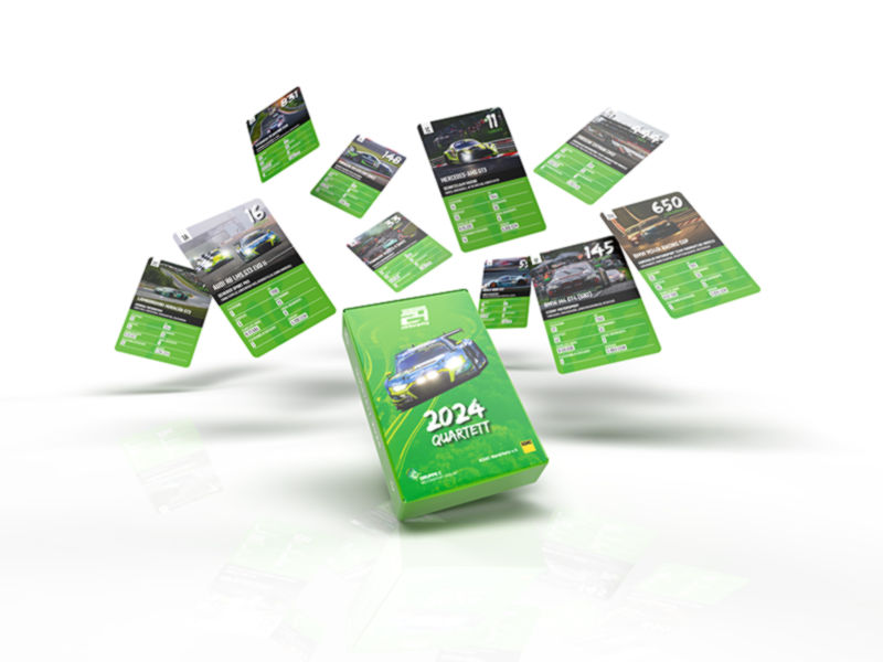 Als klassisches Quartett oder dem bekannten Trumpfspiel ist das Quartett zum 24 Stunden Rennen am Nürburgring ein riesen Spielspaß für groß und klein. Die Spielkategorien sind auf das einzigartige Motorsportevent abgestimmt und lassen nicht den Sieger #16 das Starterfeld übertrumpfen. Jeder bekommt die Chance seinen Klassensieg zu zelebrieren und der Dacia Logan sogar das Rennen der Herzen zu gewinnen. Ob der Dacia den Grello schlägt? Finde es raus! Das nächste 24h Rennen und seine nervenzerreißenden Duelle auf dem Asphalt lassen noch eine ganze Weile auf sich warten - bis dahin könnt ihr Euch batteln.