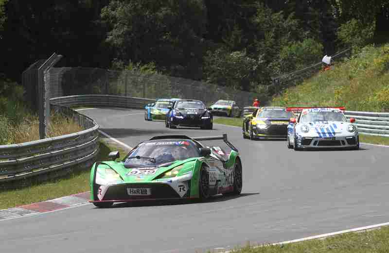 Die erste Doppelveranstaltung der Nürburgring Langstrecken-Serie fand einen krönenden Abschluss. Die Mitstreiter spendeten wohlwollend Applaus, als Björn Grossmann durch die Corona-Boxengasse seine Ehrenrunde im Fahrerlager drehte. Zusammen mit Simon Trummer, Jonathan Hirschi und Luca Ludwig feierte Grossmann den ersten großen Erfolg des Team Octane 126 in der NLS und den dritten Ferrari-Sieg in der Geschichte der traditionsreichen Nordschleifenserie. Mit einem hauchdünnen Vorsprung von gerade einmal 0,782 Sekunden wurde der italienische Supersportler vor den Siegern des Vortags, Maro Engel, Manuel Metzger, Adam Christodoulou und Luca Stolz im HRT-Mercedes, abgewinkt. Platz drei ging an das Audi Sport Team CarCollection mit Mirko Bortolotti, Christopher Haase und Markus Winkelhock.