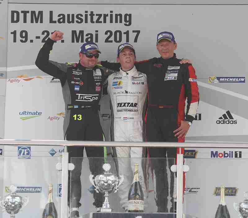 Christian Engelhart (BLACK FALCON): „Mein Team hat mir das Auto mit der besten Rennabstimmung gegeben und ich konnte mit einem sehr guten Gefühl fahren. Zwischenzeitlich setzte mich Christopher Zöchling stark unter Druck, aber ich hielt dagegen. Ich freue mich über den Sieg besonders für mein Team Black Falcon.“