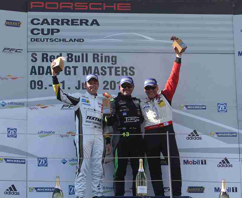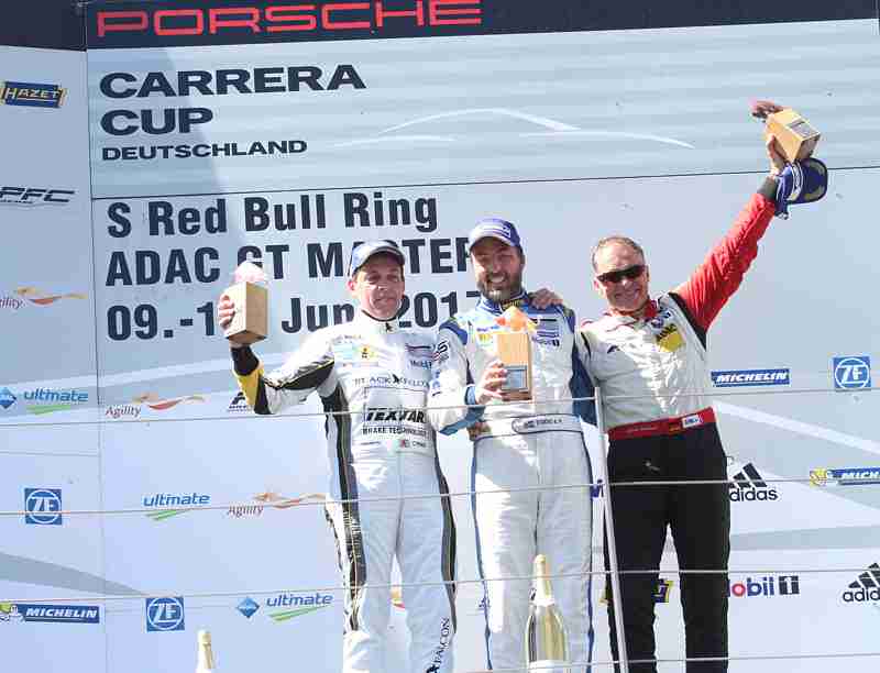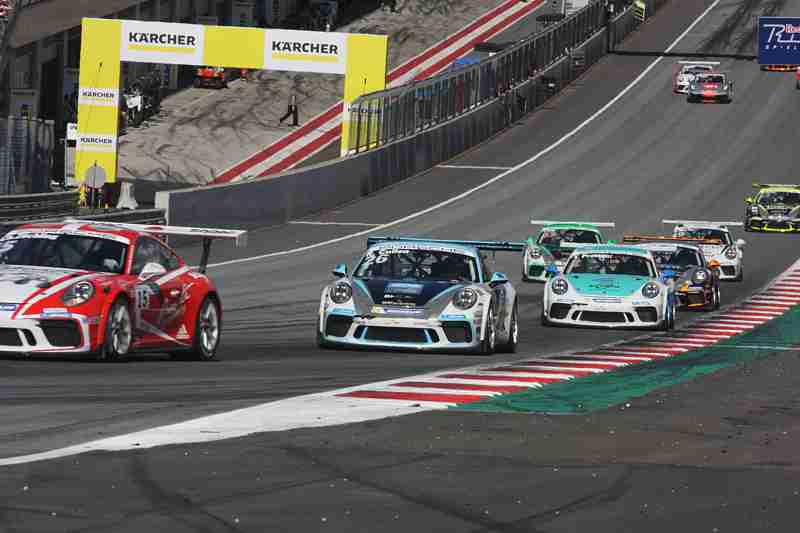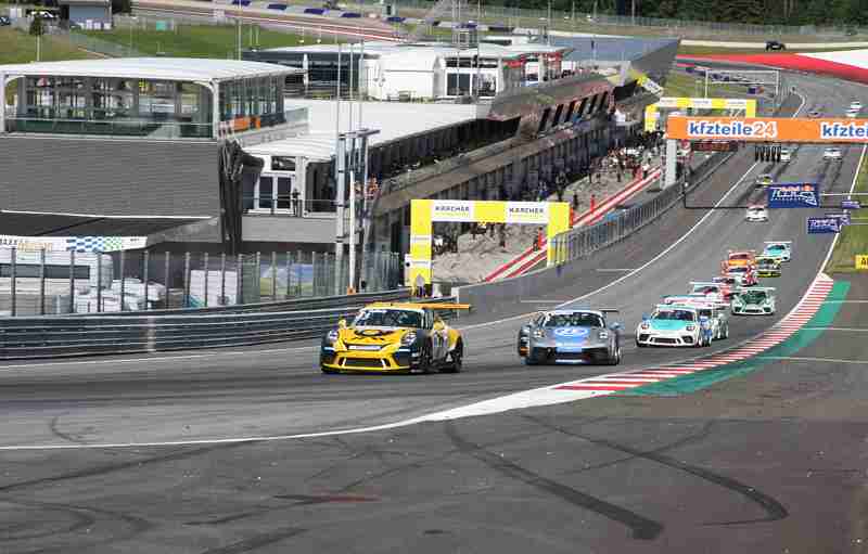 Vom 09. bis 11. Juni fanden die Läufe fünf und sechs diesmal im Rahmen der ADAC GT Masters in der Steiermark in Österreich auf dem Red Bull Ring statt. Auf die stattliche Zahl von 32 Porsche 911 GT3 Cup ist das Starterfeld an diesem Wochenende angewachsen. Das ist Saisonrekord. Als Tabellenführer reist hier Dennis Olsen mit 91 Punkten an, gefolgt von Michael Ammermüller mit 69 und Christopher Zöchling mit 65 Punkten.