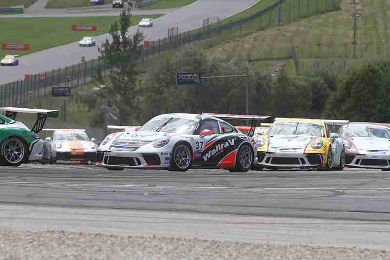 Überall im Feld sah man Dreher, Ausrutscher oder Rempler zwischen den Kontrahenten. Unterdessen pflügte Dylan Pereira nur so durchs Feld. Runde um Runde machte er Boden gut. Thomas Preining hatte bei noch fünf zu fahrenden Runden schon Überrundungen hinter sich. Nach einem Zweikampf zog Igor Walilko den Kürzeren und landete im Kiesbett. Wenig später war für Marius Nakken das Rennen neben der Strecke auch früher beendet als geplant. Jetzt wurde das Safety Car herausgeschickt. Der Re-Start erfolgte nach 16 Runden. Damit ging das Hauen und Stechen von neuem los. Thomas Preining hatte seine Führungsposition behaupten können. In der letzten Runde gingen dann aus dem Mittelfeld schon wieder zwei von der Strecke fliegen.