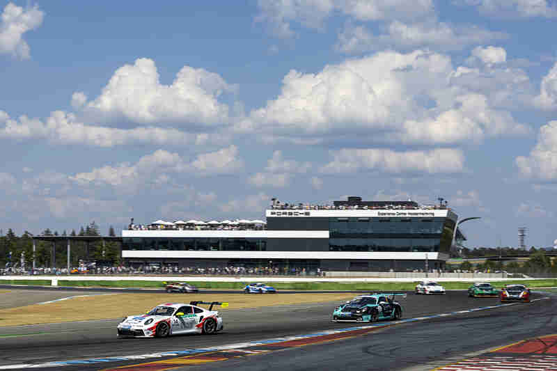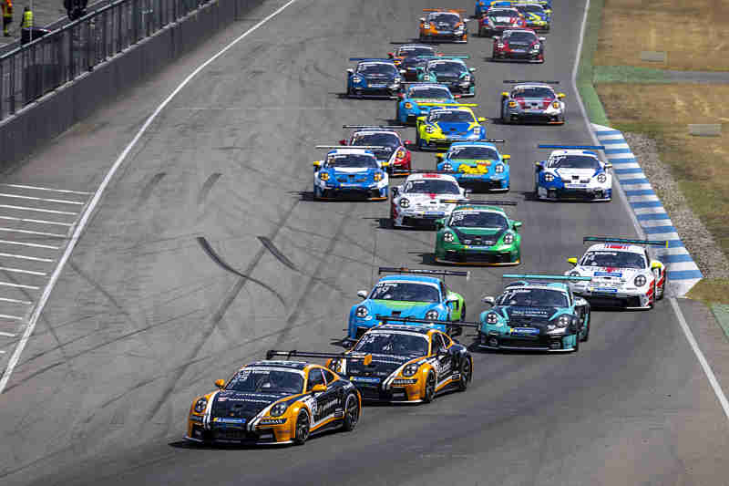 Der Start am Samstagnachmittag funktioniert ohne Probleme. Larry ten Voorde gelang schon wenige Meter nach dem Start das entscheidende Manöver zum Sieg. Im Sprint zur ersten Kurve beschleunigte der zweimalige Champion des Porsche Carrera Cup Deutschland seinen Teamkollegen Loek Hartog aus, der von der Pole-Position ins Rennen gegangen war. Auf den verbliebenen 17 Runden verteidigte Larry ten Voorde überlegen die Führung. Loek Hartog seinerseits hielt während des gesamten, durch zwei Safety-Car-Phasen unterbrochenen Rennens den Briten Harry King auf Distanz. Harry King war aus Position vier gestartet, überholte aber sofort den im Qualifying noch schnelleren Deutschen Leon Köhler. Hinter dem Briten kamen der Niederländer Morris Schuring als Vierter und der Franke Leon Köhler als Fünfter ins Ziel.