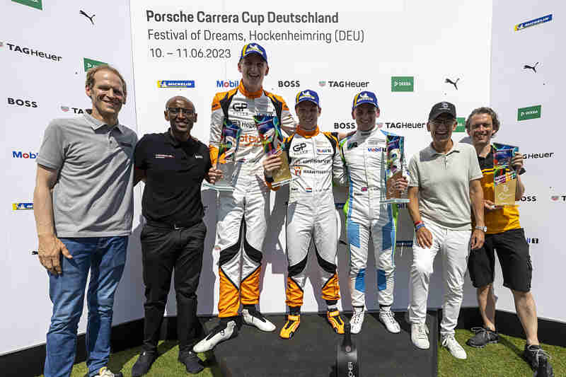 Larry ten Voorde (Team GP Elite): „Ich hatte noch das zurückliegende Rennen des Porsche Mobil 1 Supercup in Monaco im Hinterkopf, bei dem ich aus der Pole-Position heraus das Duell nach dem Start verlor und nur Zweiter wurde. Dieses Mal habe ich mich zu 100 Prozent auf den Start konzentriert – und der lief wirklich perfekt.“