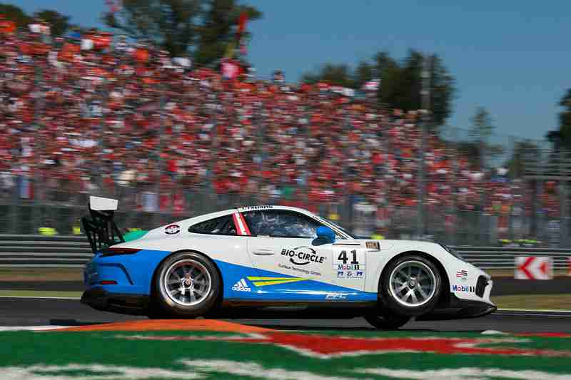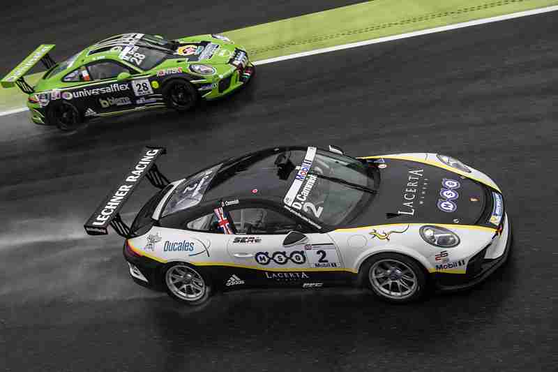 Als Sechster sah Ryan Cullen (GB/Walter Lechner Racing Team) die Zielflagge vor Robert Lukas (PL/Olimp Racing). Porsche-Junior Thomas Preining (A/Walter Lechner Racing Team), der als Gaststarter in Monza im Einsatz war und in diesem Jahr im Porsche Carrera Cup Deutschland fährt, kam auf Platz acht ins Ziel. „Am Start war es crazy, aber ich konnte von Platz zehn kommend sogar eine Position gut machen. Allerdings wurde ich dann ausgangs der ersten Kurve getroffen und fand mich plötzlich auf Platz 16 wieder. Von dort habe ich mich wieder nach vorn gearbeitet.“ Daniel Cammish (GB/Lechner MSG Racing Team) wurde Neunter.