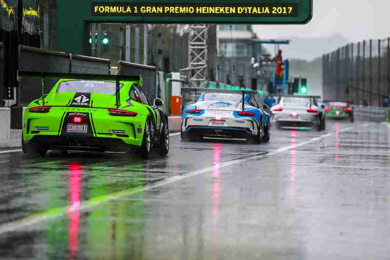 Ab morgens regnete es in Monza und auf der Hochgeschwindigkeitsrennstrecke stand das Wasser. Als gegen Mittag das Zeittraining des Porsche Mobil 1 Supercup starten sollte, gingen 31 Fahrer in ihren 485 PS starken Porsche 911 GT3 Cup auf die Strecke, doch die Session wurde aus Sicherheitsgründen ohne gezeitete Runden abgebrochen. Entsprechend kam das vor zwei Jahren geänderte Reglement zum Tragen, das in diesem Fall vorsieht, die Trainingszeiten als Maßstab für die Startreihenfolge zu nehmen. Campbell konnte somit nach dem Zeittraining für den Doppellauf in Barcelona und dem Qualifying in Spielberg seine vierte Pole-Position der Saison für sich verbuchen.