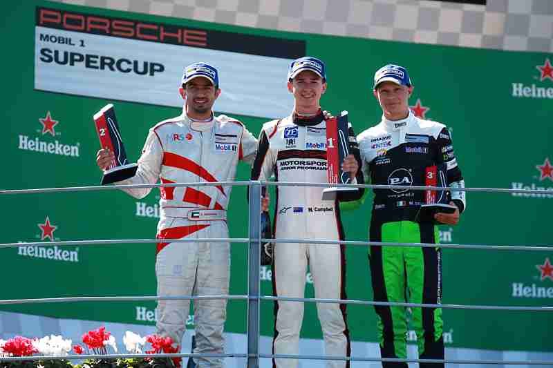 Nach dem Abbruch des Qualifyings wegen starkem Regen wird für die Startaufstellung des 9. Laufs zum Porsche Mobil 1 Supercup das Ergebnis des freien Trainings vom Freitag herangezogen. Damit starten Matt Campbell und Zaid Ashkanani am Sonntag aus der ersten Reihe ins Rennen. Die zweite Startreihe teilen sich Michael Ammermüller und Dennis Olsen.