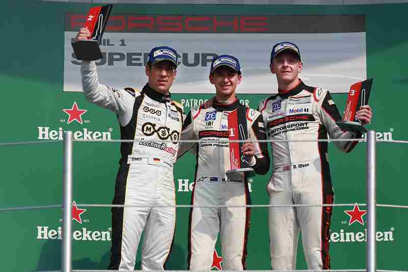 Olsen startete mit seinem 485 PS starken Porsche 911 GT3 Cup von der Pole-Position auf die 4,304 Kilometer Strecke. Der Norweger verlor jedoch in der ersten Runde zwei Positionen und musste sich hinter Campbell und Ammermüller auf Platz drei einordnen. Campbell suchte sein Heil in der Flucht und erarbeitete sich einen komfortablen Vorsprung von 4,2 Sekunden. Als nach der sechsten Runde das Safety-Car wegen einer Fahrzeugbergung ausrücken musste, schmolz dieser Vorteil wieder zusammen. Der Australier präsentierte sich jedoch hellwach und konnte die Spitze verteidigen. Hinter ihm spielten sich spannende Positionskämpfe ab, doch selbst eine zweite Safety-Car-Phase konnte den 22-Jährigen nicht von seinem Siegkurs abbringen.