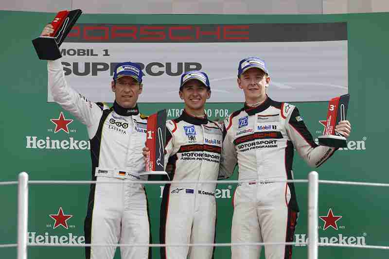 „Es ist toll, dass ich in Mexiko einen Doppelsieg einfahren konnte. Was für ein schönes Saisonende für mich und mein Team! Ich muss sagen, dass es das ganze Jahr über in jedem Rennen ein unglaublicher Wettbewerb war. Für mich als Australier waren alle Strecken Neuland und ich musste erst einmal Erfahrung sammeln. Platz drei in der Meisterschaft geht absolut in Ordnung“, fasste Campbell sein Jahr als Porsche-Junior im Supercup zusammen. Hinter Campbell und Ammermüller komplettierte Olsen das Podium. „Ich habe im Rennen alles gegeben. Am Ende hat es nicht für den Titel gereicht. Es ist mein erstes Jahr im Supercup und vor der Saison habe ich nicht damit gerechnet, dass ich so eng um die Meisterschaft mitkämpfen kann“, erklärte Olsen, der sich mit sieben Punkten Rückstand Platz zwei in der Gesamtwertung sicherte.