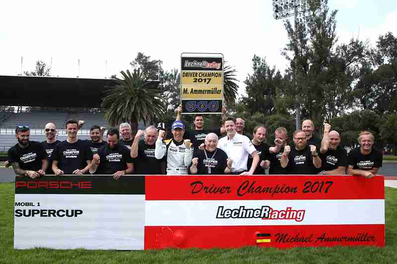 Stuttgart. Michael Ammermüller heißt der neue Champion im Porsche Mobil 1 Supercup. Der 31-jährige Deutsche, der für das Lechner MSG Racing Team fährt, sicherte sich am Sonntag beim Finalwochenende in Mexiko-Stadt den Gewinn der Meisterschaft. Im letzten Rennen der Saison siegte jedoch Porsche-Junior Matt Campbell (AUS/Fach Auto Tech) vor Ammermüller und Porsche-Junior Dennis Olsen (N/Walter Lechner Racing Team). Ammermüller reichte Platz zwei, um mit einem Sieben-Punkte-Vorsprung den Titel zu holen. „Vier Siege, fünfmal Platz zwei, einmal Platz drei – mit dieser konstanten Leistung konnte ich jetzt endlich den Supercup gewinnen. Darüber freue ich mich natürlich sehr und bin dankbar für eine großartige Lechner-Teamleistung“, sagte ein freudestrahlender Ammermüller.
