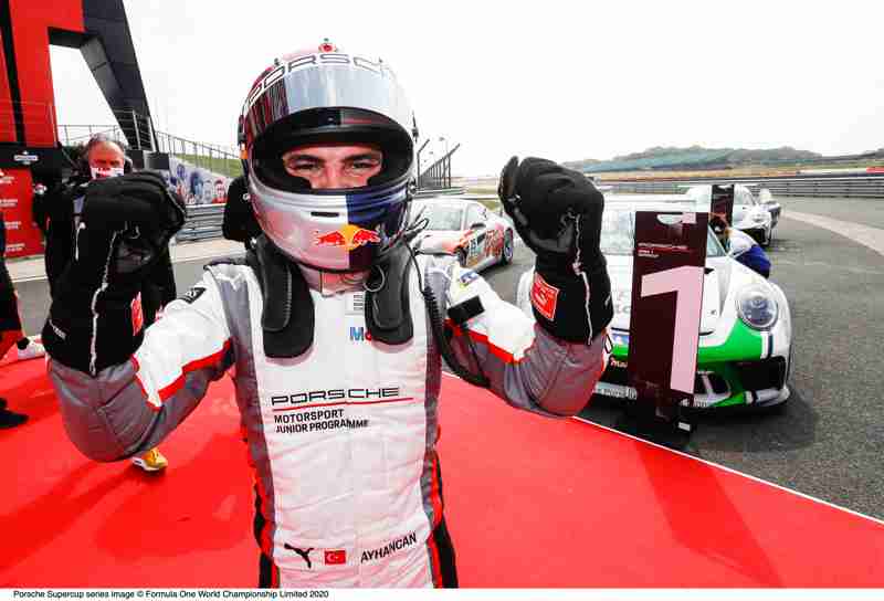 Silverstone ist ein gutes Pflaster für Ayhancan Güven (Martinet by Alméras). 2019 feierte er auf der britischen Traditionsrennstrecke seinen ersten Sieg im Porsche Mobil 1 Supercup. Beim fünften Lauf der Saison 2020, ausgetragen im Rahmen des „70th Anniversary Grand Prix“ zu Ehren des 70. Geburtstags der Formel 1, war der mittlerweile zum Porsche-Junior avancierte Türke erneut ganz vorne. Güven siegte nach einem über beinahe die gesamte Renndistanz von 13 Runden dauernden Duell mit Larry ten Voorde (Niederlande/Team GP Elite). Knapp dahinter kam Dylan Pereira (Luxemburg/BWT Lechner Racing) ins Ziel, der damit die Tabellenführung im internationalen Markenpokal mit dem 485 PS starken Porsche 911 GT3 Cup verteidigte.