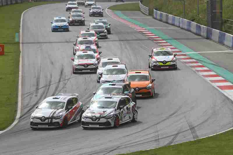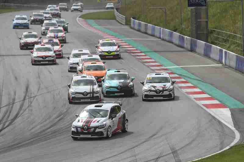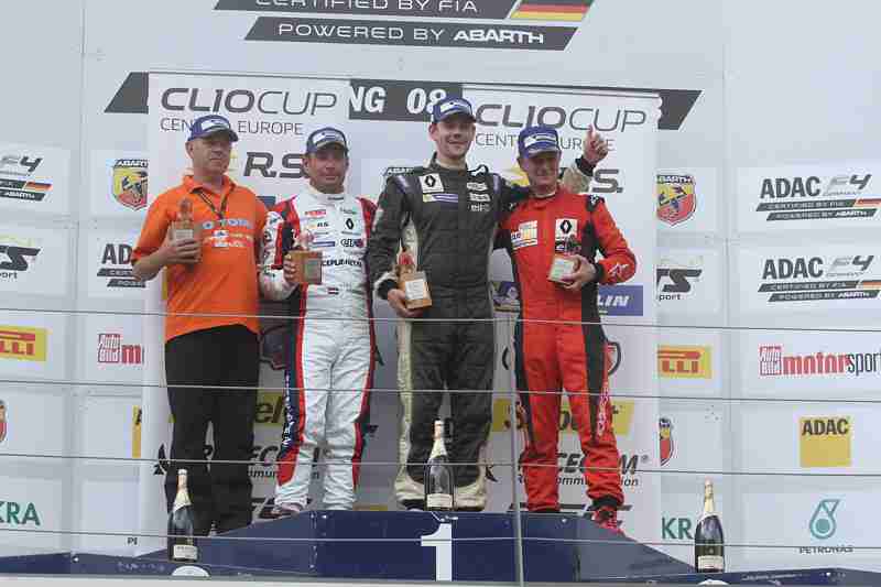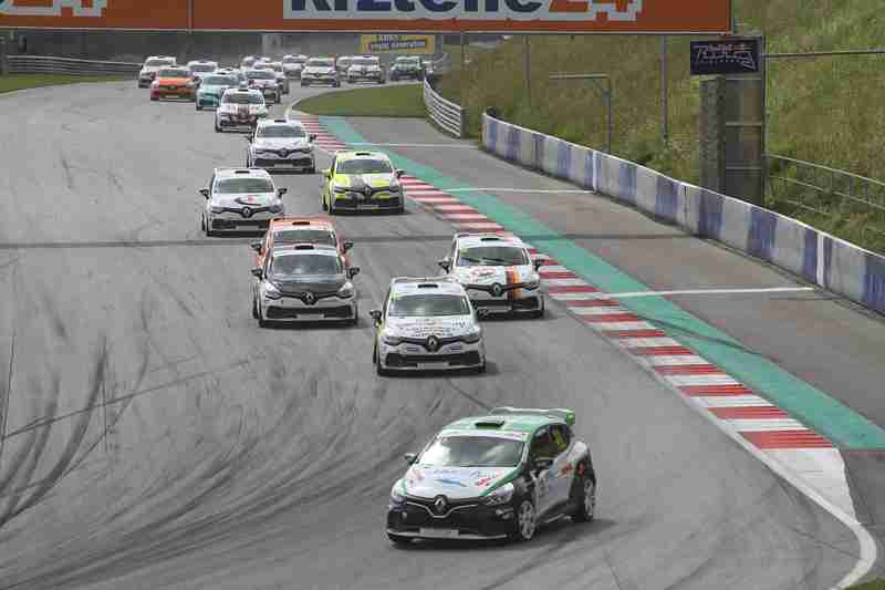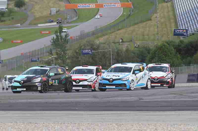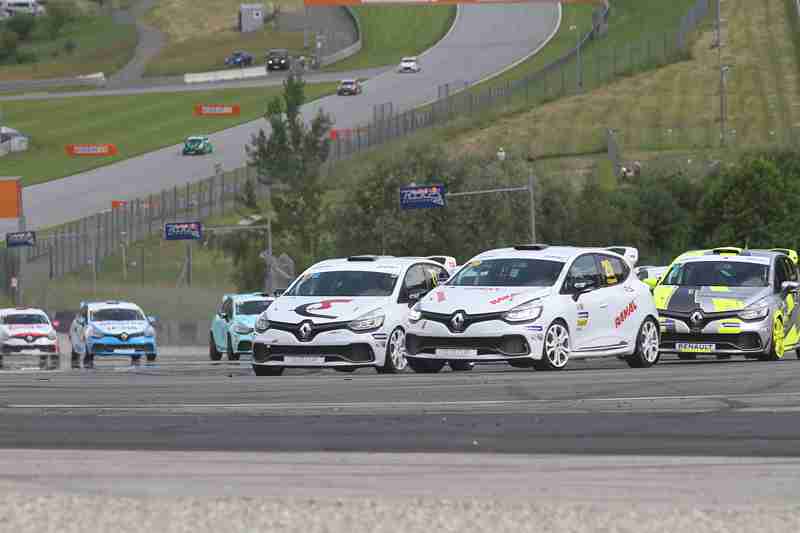 Als letzte Serie ging der Clio Cup Central Europe am Sonntag auf die Strecke, um ihr zweites Rennen an diesem Wochenende hinter sich zu bringen. Da die ersten sechs aus dem Zeittraining in umgekehrter Reihenfolge starten, hatte Karol Urbaniak Startplatz eins eingenommen, gefolgt von Niklas Mackschin und Sebatiaan Bleekemolen. Auch dieser Start erfolgte ohne Probleme nach der Einführungsrunde. Der Pole-Setter hatte einen guten Start und konnte seine Position behaupten. Im hinteren Feld ging bereits vor der ersten Kurve Javin Lewis Seyhan von der Strecke fliegen. Ansonsten ging es mit viel Disziplin durch die erste Kurve.