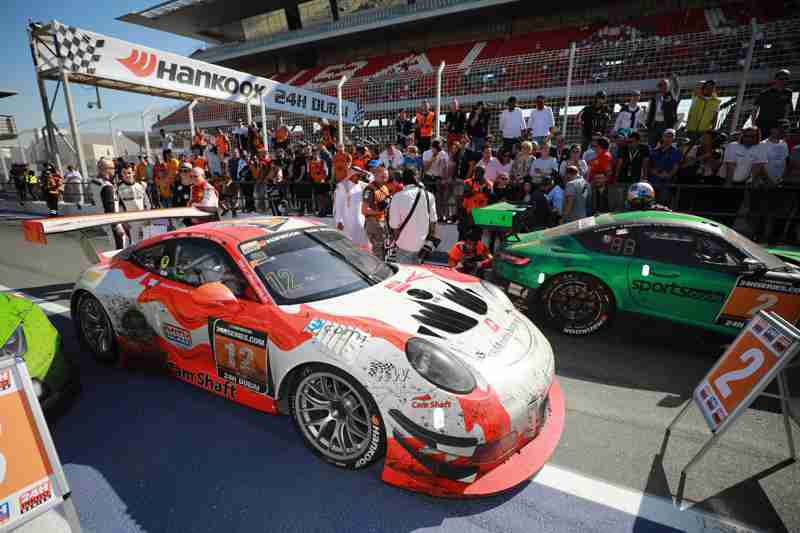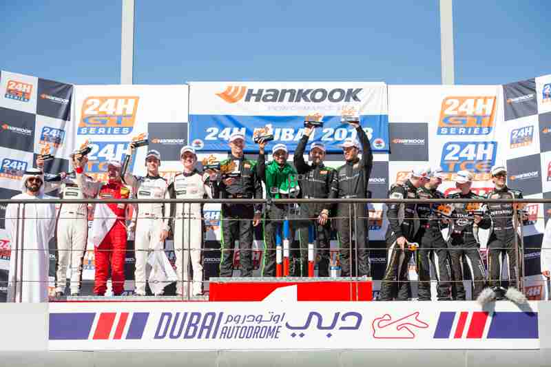 Die Brüder Mark und Rolf Ineichen (Schweiz), Christian Engelhart (Deutschland) und Mirko Bortolotti (Italien) beendeten die Hankook 24H Dubai mit dem Lamborghini Huracán GT3 (Start-Nr. 964) als Dritte. Das GRT Grasser Racing Team ging am Freitag auf der Pole-Position in die Hankook 24H Dubai, fiel nach einem guten Start jedoch weit zurück. In der Nacht machte das Fahrer-Quartett aber viel Boden gut und holte sich schließlich mit einem Rückstand von zwei Runden den dritten Podiumsplatz. Bester Audi R8 LMS war das Fahrzeug vom Team BWT Mücke Motorsport mit der Start-Nummer 9. Die Piloten Markus Winkelhock, Mike-David Ortmann, Andreas Weishaupt, Christer Jöns (alle Deutschland) und der Schweizer Ricardo Feller sahen nach 597 Umläufen als Fünfte die Zielflagge.
