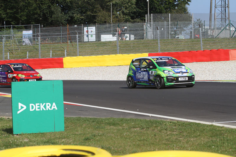 Carl Canenbley verlor in der ultraschnellen Doppellinks Pouhon kurz die Kontrolle über seinen 150 PS starken, mit eFuels betriebenen VW up! GTI. Mit perfekter Fahrzeugbeherrschung konnte er den Boliden wieder abfangen, doch Miguel Henrich kam beim Ausweichversuch von der Strecke ab. Eine Safety-Car-Phase war die Folge. Zu dieser Zeit führte Storm Gjerdrum vor Mike Müller und Julian Konrad. Cedric Fuchs lag auf Platz fünf. Beim Restart am Ende der fünften Runde lag Storm Gjerdrum weiterhin vor Mike Müller und Julian Konrad. Mike Müller attackierte sofort aus dem Windschatten und übernahm die Führung. Julian Konrad wollte Mike Müller in Les Combes folgen, doch es kam zur Kollision zwischen ihm und Storm Gjerdrum. Da wenige Meter später auch Bruno Görtz von der Strecke rutschte, entschied die Rennleitung, das Rennen vorzeitig zu beenden.