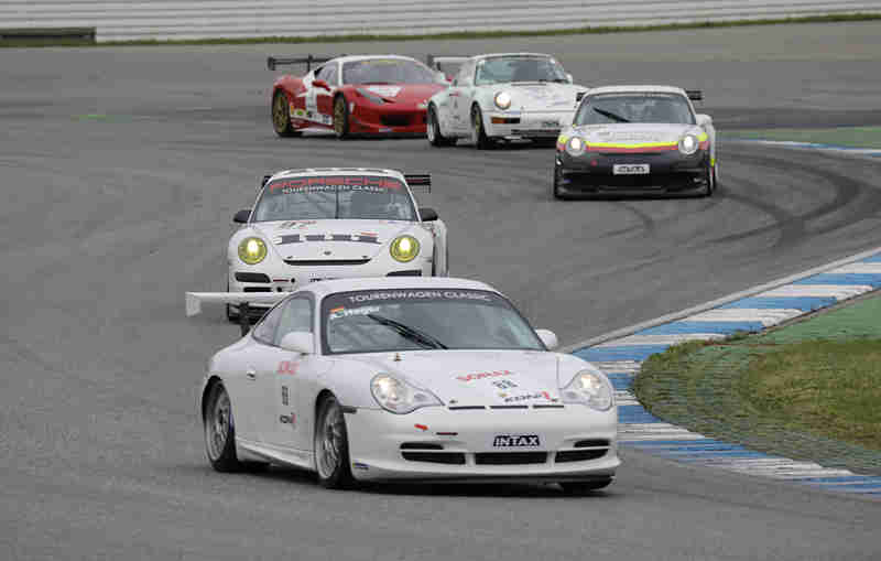 Bei trockener Strecke konnte das erste Rennen der Tourenwagen Classic in der Saison 2023 am Samstagvormittag gestartet werden. Nach der Einführungsrunde funktionierte der fliegende Start ohne weiteres und der Pole-Setter konnte seine Position nicht verteidigen, denn Anton Werner von Rang drei gekommen hatte sich bereits vor der ersten Kurve in Führung gesetzt. An der Spitze waren unterdessen gleich fünf Porsche unterwegs. Nach der ersten Runde führte wieder Altfrid Heger mit einem Vorsprung von 0,702 Sekunden vor Anton Werner und Alexander Schmitt. Renè Ruch war zwischenzeitlich an Thilo Goos vorbeigegangen und hatte Platz sechs eingenommen.