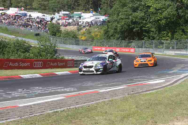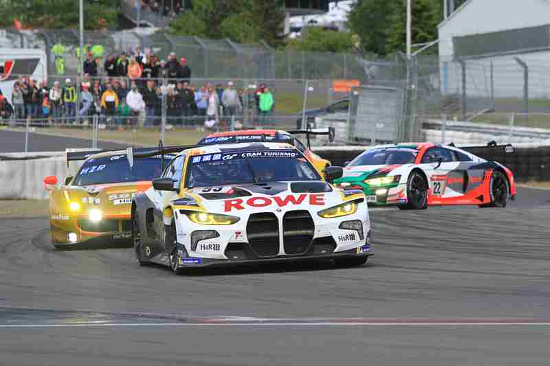 Nach einer spektakulären Startphase, die vor allem der #99 Rowe-BMW und der #7 Konrad-Lamborghini prägten, begann bereits früh ein regelrechtes Favoriten-Sterben. Dabei schieden mehrere Top-Teams durch Unfälle oder technische Defekte ausschieden oder entscheidend zurückfielen, nachdem sie zwischenzeitlich das Feld angeführt hatten. Dabei folgten auf den Rowe-BMW #99 sein Schwesterauto mit der #98, der von der Pole-Position gestartete #126 octane126-Ferrari, der #7 Konrad-Lamborghini, der #5 Phoenix-Audi und der #90 TF Sport-Aston Martin. Besonders spektakulär verabschiedete sich der Titelverteidiger: der Belgier Laurens Vanthoor berührte im #1 Manthey-Porsche auf der Döttinger Höhe ausgerechnet den #15 Phoenix-Audi seines Bruders Dries am Steuer und schleuderte mit dem „Grello“ bei rund 260 km/h in die Leitplanken.