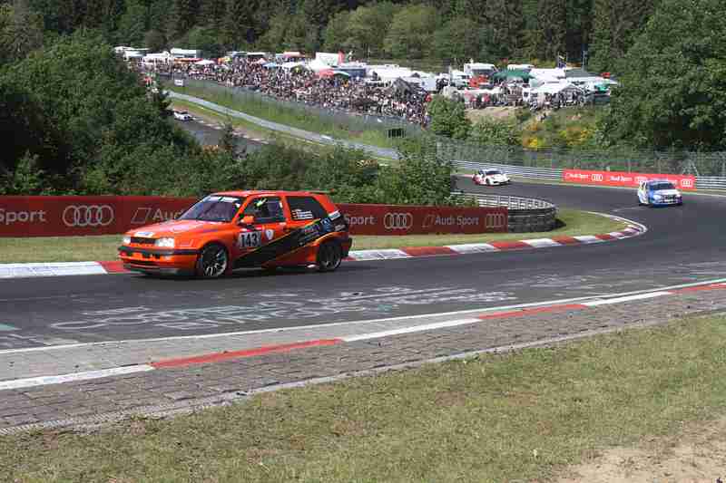 Auch das Max Kruse Team aus Hochfeld blieb von Unfällen nicht verschont. Auf der #310 beendeten Jasmin Preisig, Gustavo Xavier, Emir Asari sowie Matthias Wasel das Rennen auf P2 in der Klasse SP3T– im Gesamtklassement bedeutet dies einen sehr guten 53. Platz von 135 gestarteten Fahrzeugen obwohl beim Boxenstopp die Feuerlöschanlage ausgelöst wurde. Die Reinigung kostet dem Team ½ Stunde. Danach kämpften sie sich zurück bis auf fünf Sekunden Rückstand auf den Führenden. Beim Überrunden wurden sie dann hinten getroffen und schlugen in der Leitplanke ein, konnten aber weiterfahren.