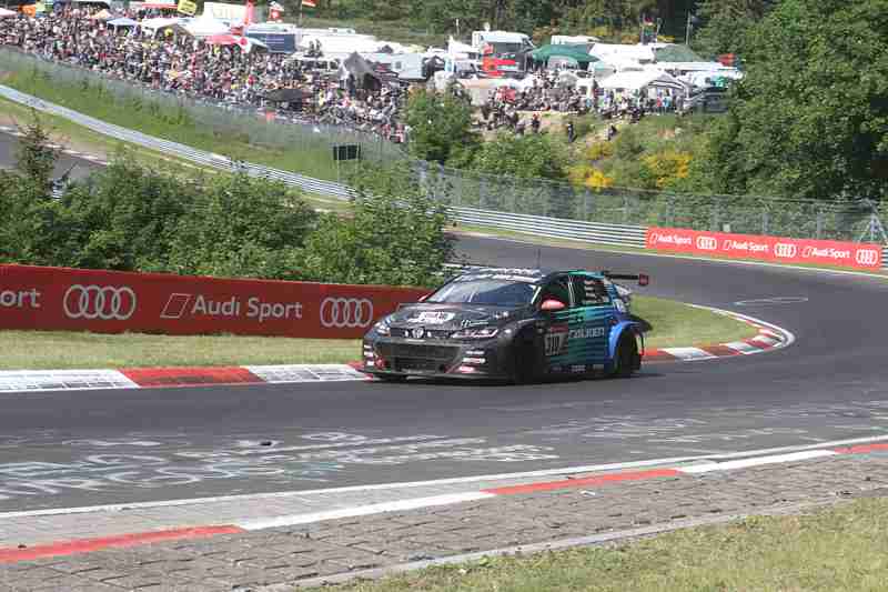 Auch das Max Kruse Team aus Hochfeld blieb von Unfällen nicht verschont. Auf der #310 beendeten Jasmin Preisig, Gustavo Xavier, Emir Asari sowie Matthias Wasel das Rennen auf P2 in der Klasse SP3T– im Gesamtklassement bedeutet dies einen sehr guten 53. Platz von 135 gestarteten Fahrzeugen obwohl beim Boxenstopp die Feuerlöschanlage ausgelöst wurde. Die Reinigung kostet dem Team ½ Stunde. Danach kämpften sie sich zurück bis auf fünf Sekunden Rückstand auf den Führenden. Beim Überrunden wurden sie dann hinten getroffen und schlugen in der Leitplanke ein, konnten aber weiterfahren.