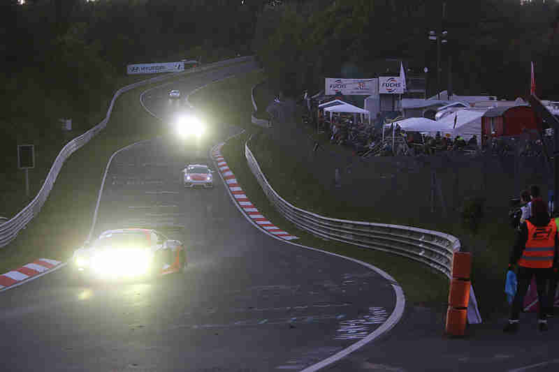 Ein Höhepunkt in diesem Vorprogramm: Die Verleihung der Glickenhaus-Trophy an denjenigen Piloten, der die schnellste Top-Qualifying-Runde gefahren ist. Um 15:40 Uhr schließlich setzt sich das Starterfeld für eine lange Einführungsrunde über die Nordschleife in Bewegung. Angeführt von einem Audi R8 e-tron geht das Defilee an den Fans auf der Nordschleife vorbei. Um 16:00 Uhr schließlich springt die Startampel auf „Grün“ für die 51. Auflage der ADAC TotalEnergies 24h Nürburgring.