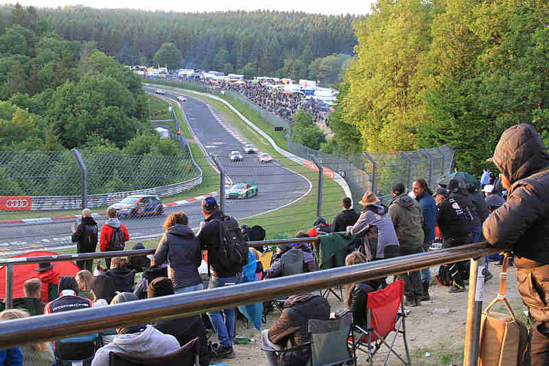 Lust but not least ist es natürlich die Nordschleife, die für sich genommen schon den Weg wert ist und um die herum während der Veranstaltungstage ständig Überraschungen blühen. Da gibt es Rennfahrer und Teams, die zur Stippvisite bei den Fans vorbeischauen – oder auch Fangruppen, die mit ihrem ganz eigenen Unterhaltungsprogramm für Stimmung sorgen. Natürlich ist das alles eingebettet in die einmalige Atmosphäre von Grillparty, DJ-Contest und Benzingesprächen.
