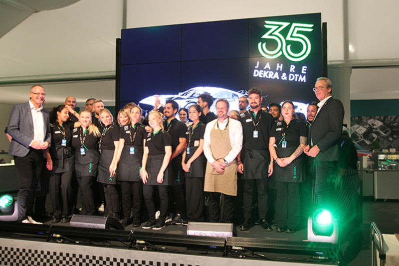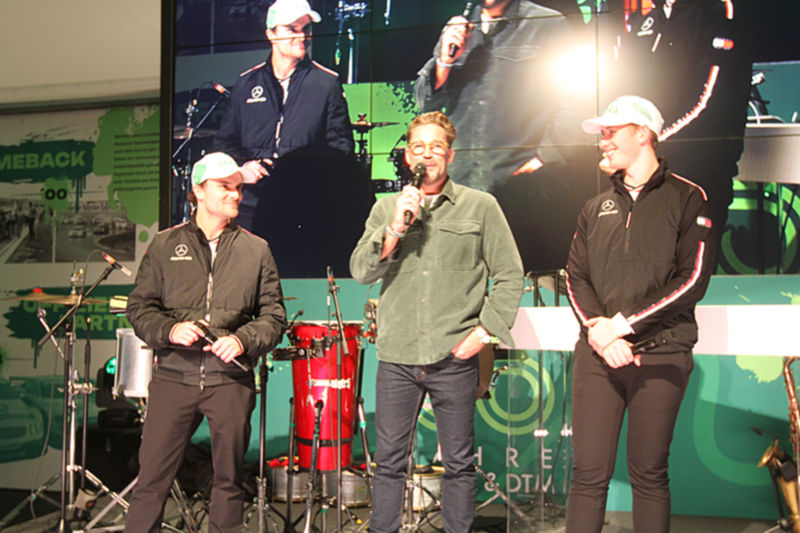 Alle Fahrer waren am Freitagabend zum 35-jährigen DTM-Jubiläum von Dekra gekommen. In ihren Renn-Overalls standen sie bei Galaveranstaltung in der Dekra-Hospitality auf der Bühne und wurden vom ehemaligen langjährigen DTM-Moderator Claus Lufen befragt. Auch die ehemalige Sportmoderatorin Christa Gierke-Wedel, die erste weibliche Leitung des ZDF in der Hauptredaktion Sport, feierte mit. Unter den zahlreichen Gästen waren auch der fünfmalige DTM-Champion Bernd Schneider, der ehemalige Motorsportchef von Mercedes-Benz in der Formel 1 und der DTM Norbert Haug sowie DTM-Größen wie Harald Grohs, Olaf Manthey, Martin Tomczyk oder Kris Nissen.