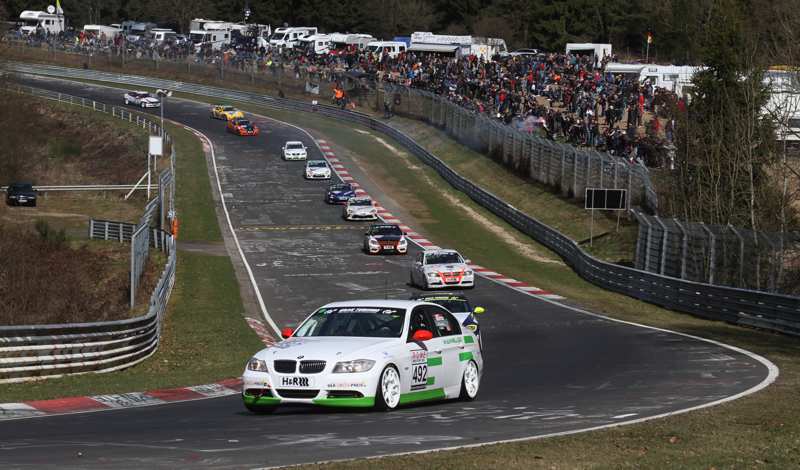 Ähnlich umkämpft war der Zieleinlauf in der Klasse V4 (VLN-Produktionswagen bis 2.500 ccm Hubraum). Hier setzten sich die Lokalmatadore vom MSC Adenau, Marcel Mannheller und Hajo Müller, mit 0,818 Sekunden gegen Oskar Sandberg und Thorsten Kratz aus dem Team Securtal Sorg Rennsport durch. Die seriennahe Klasse war mit 18 Fahrzeugen sehr gut besetzt, beide Siegerteams pilotierten einen BMW 325i.